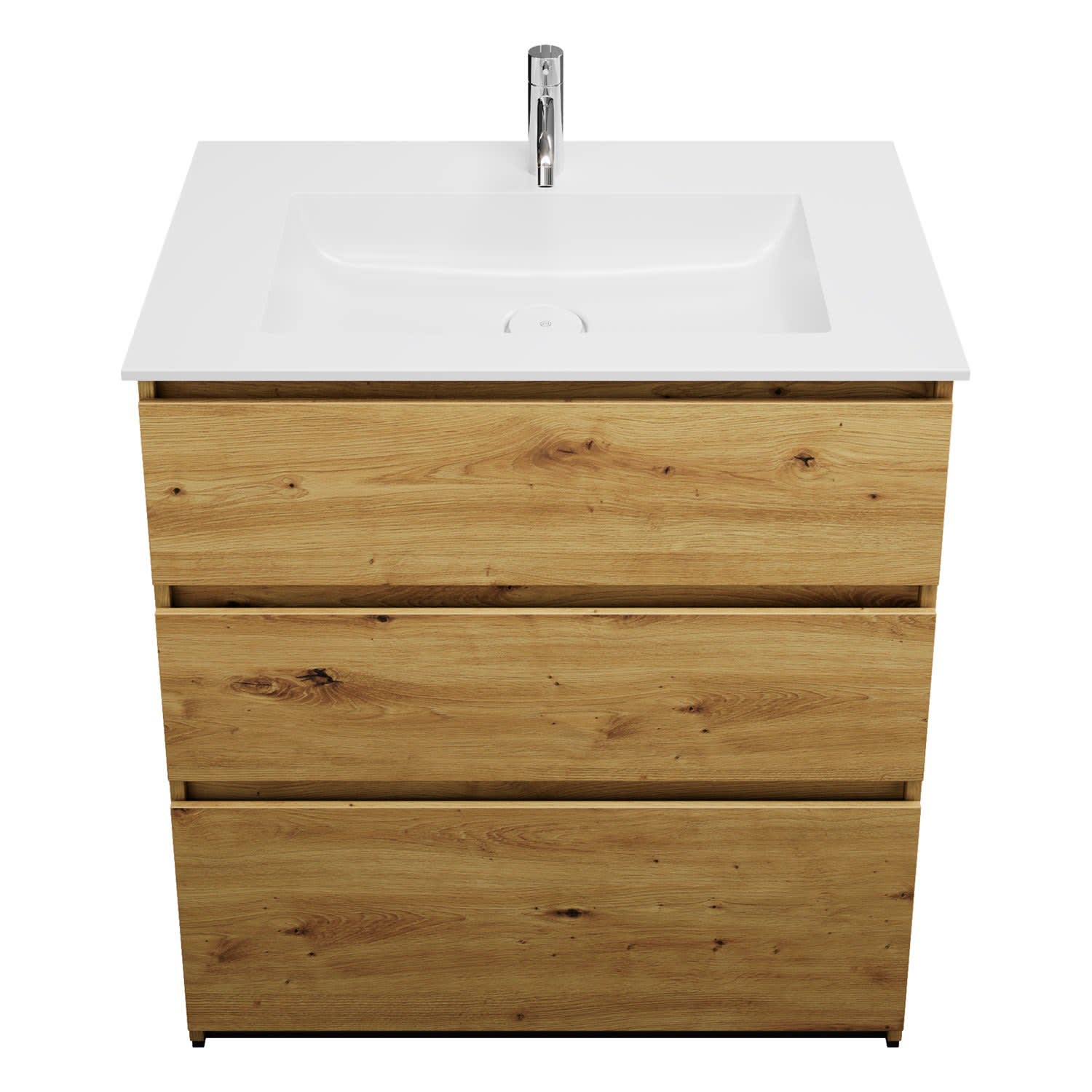 burgbad Lin20 Waschtischunterschrank mit Mineralguss-Waschtisch 82 cm, 3 Auszüge