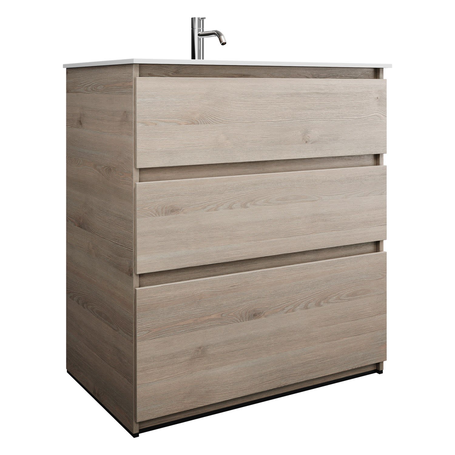 burgbad Lin20 Waschtischunterschrank mit Mineralguss-Waschtisch 82 cm, 3 Auszüge