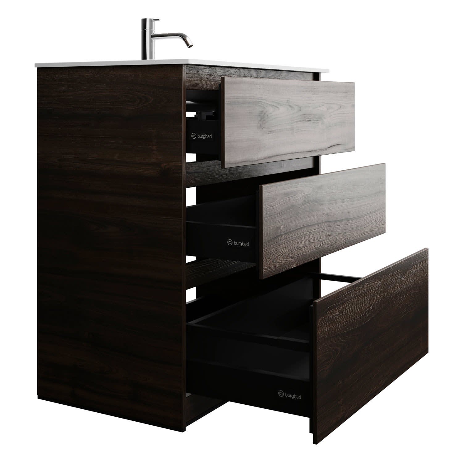 burgbad Lin20 Waschtischunterschrank mit Mineralguss-Waschtisch 82 cm, 3 Auszüge