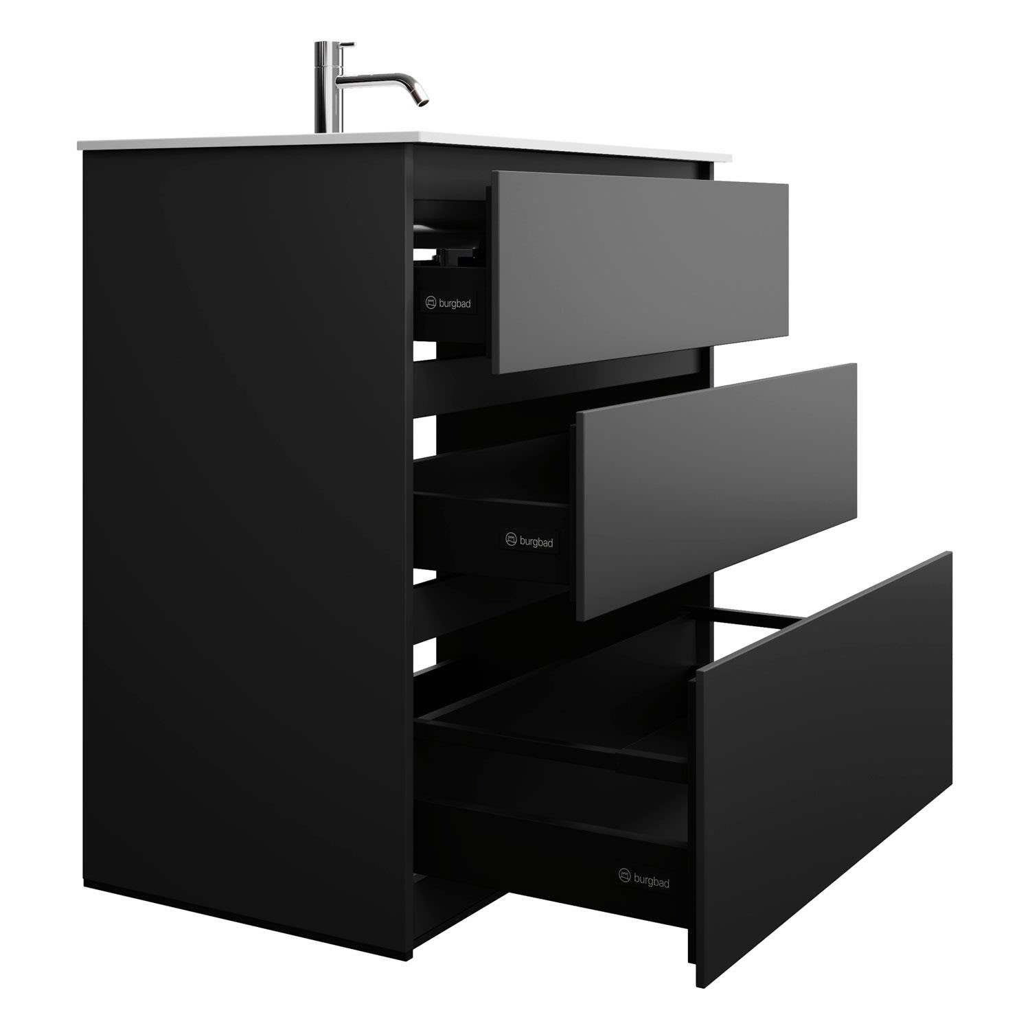 burgbad Lin20 Waschtischunterschrank mit Mineralguss-Waschtisch 82 cm, 3 Auszüge