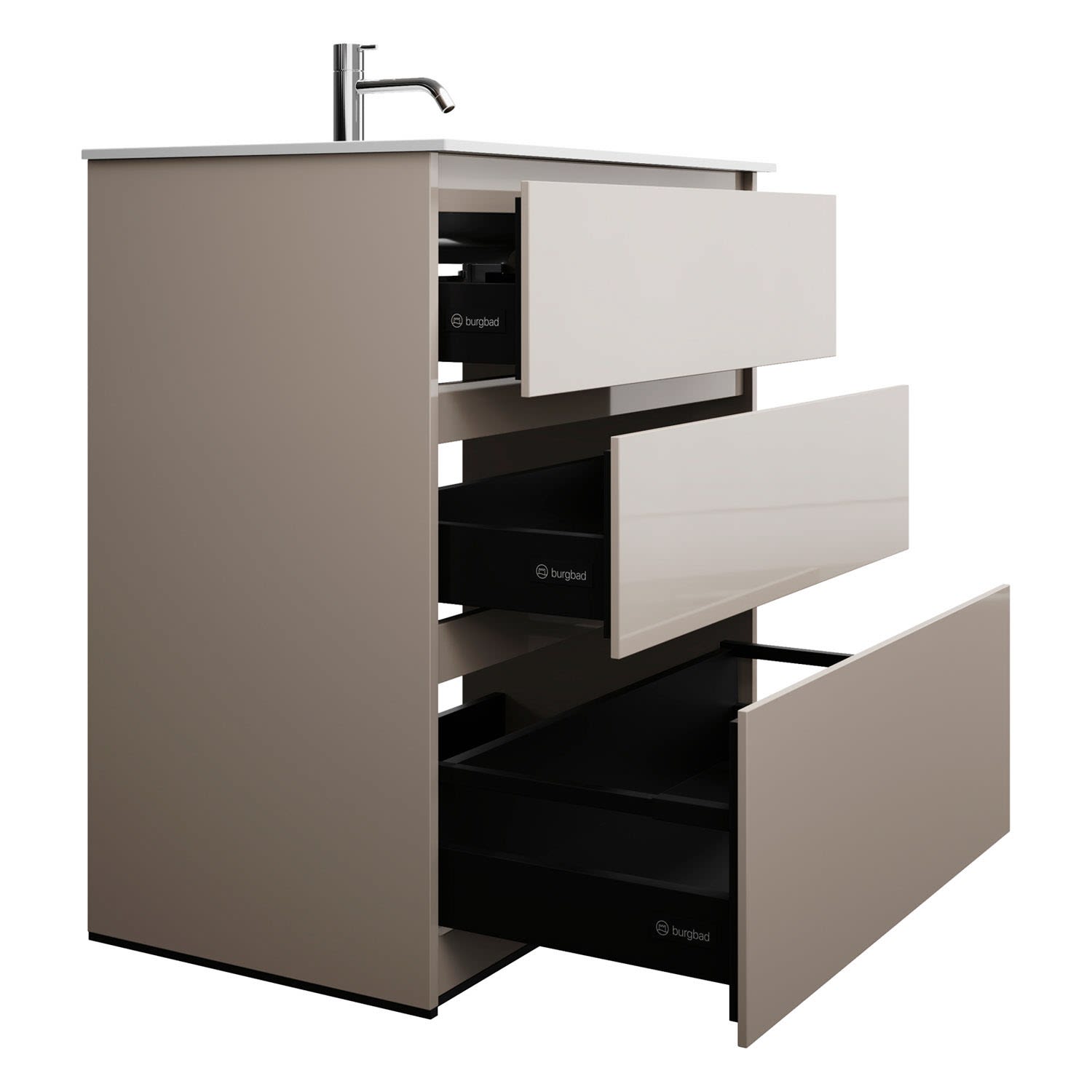 burgbad Lin20 Waschtischunterschrank mit Mineralguss-Waschtisch 82 cm, 3 Auszüge