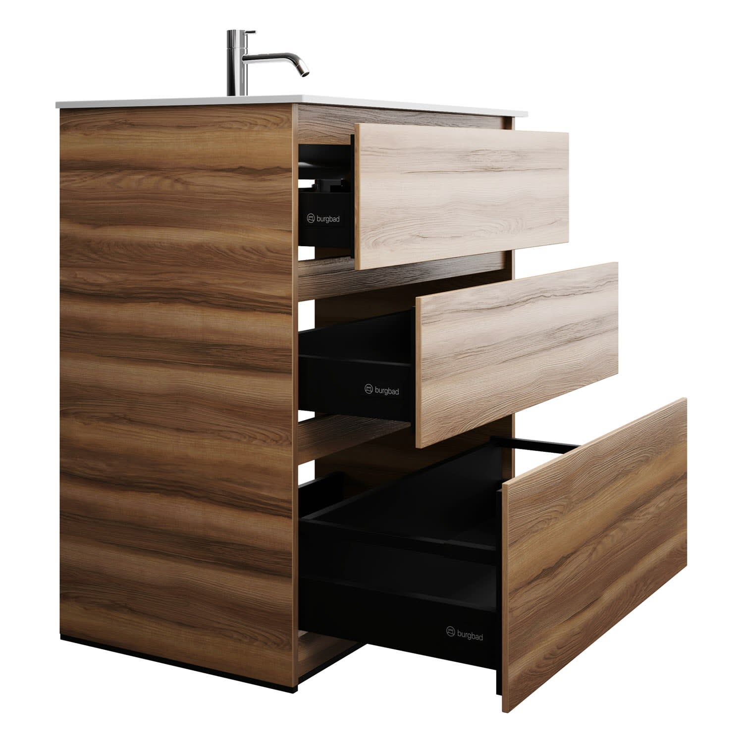 burgbad Lin20 Waschtischunterschrank mit Mineralguss-Waschtisch 82 cm, 3 Auszüge