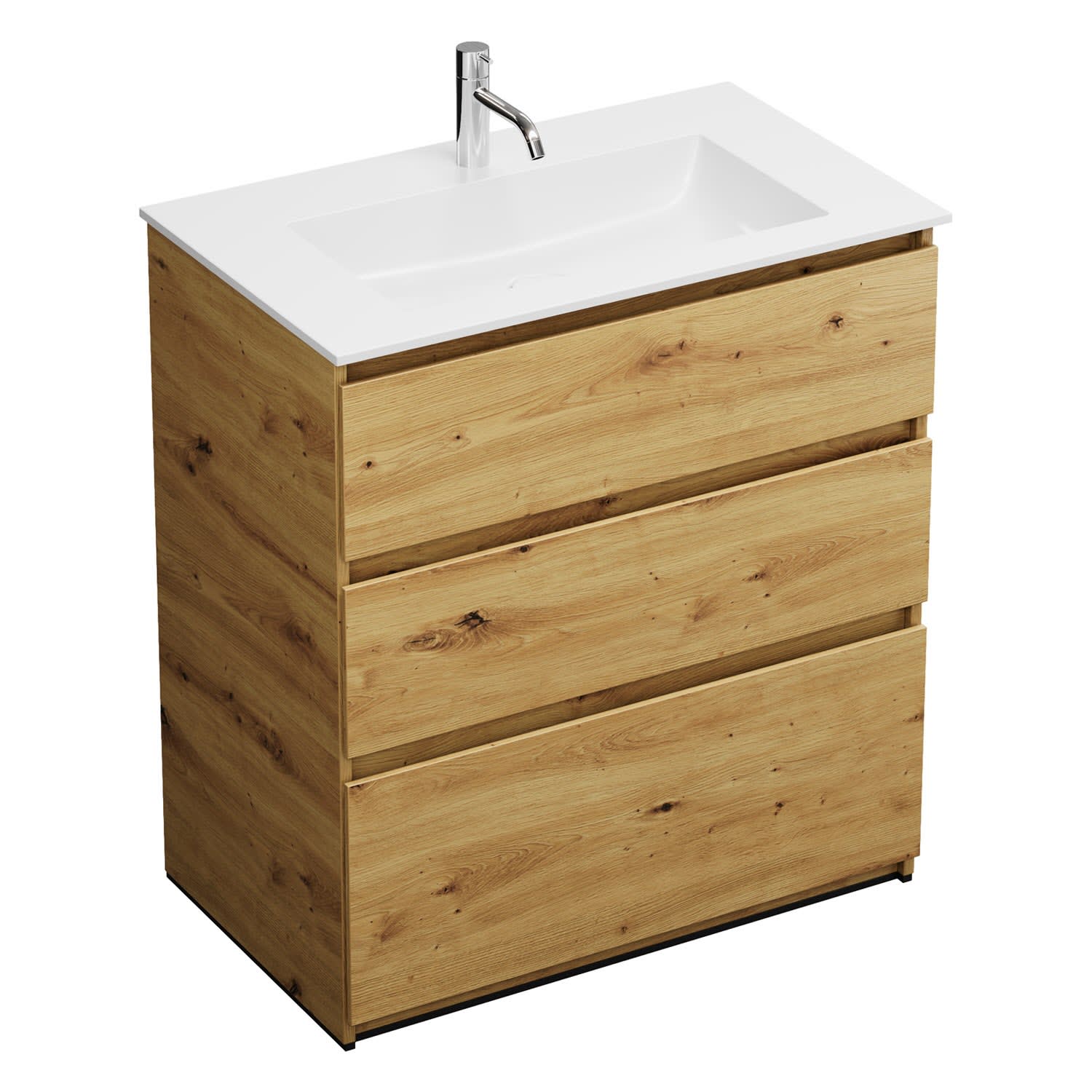 burgbad Lin20 Waschtischunterschrank mit Mineralguss-Waschtisch 82 cm, 3 Auszüge