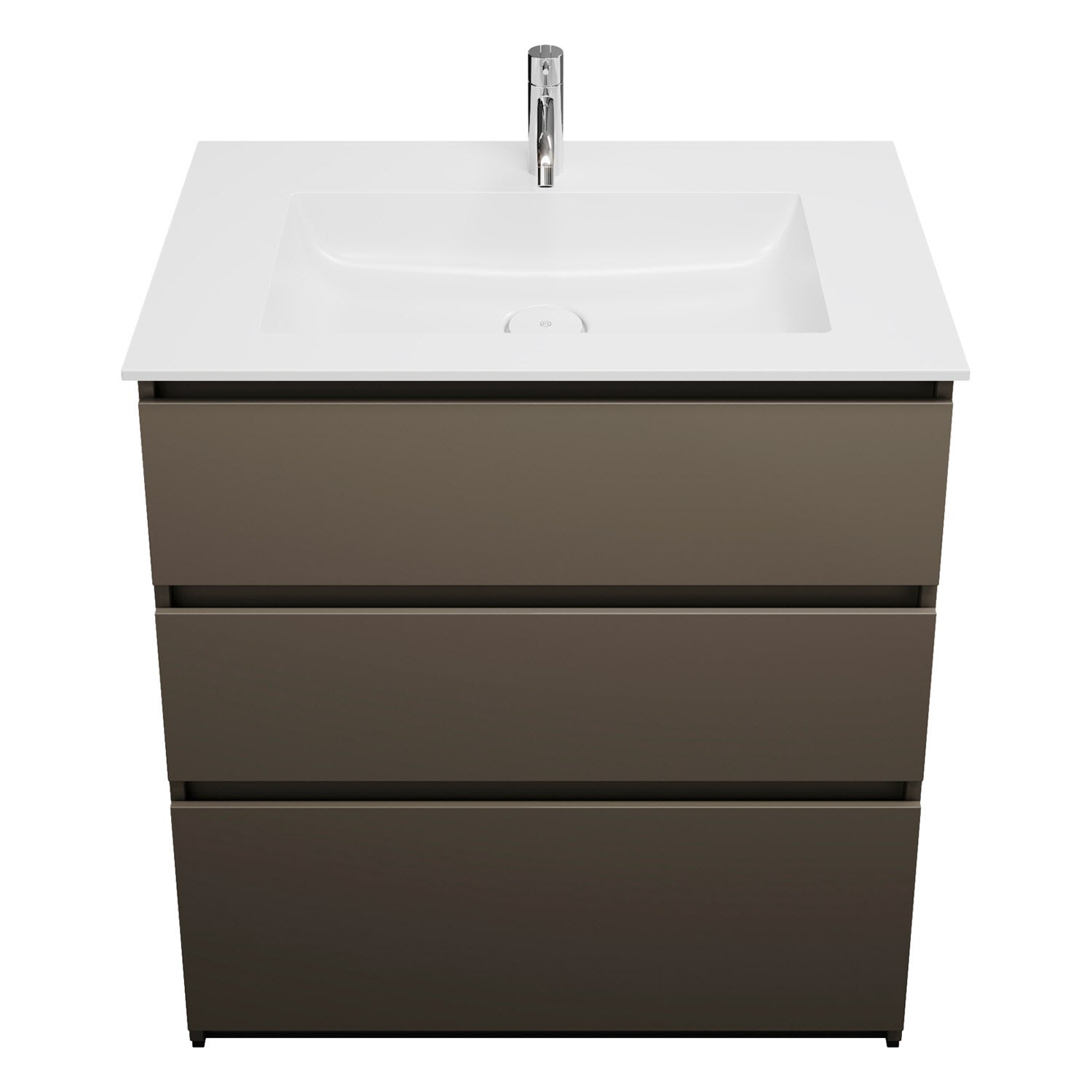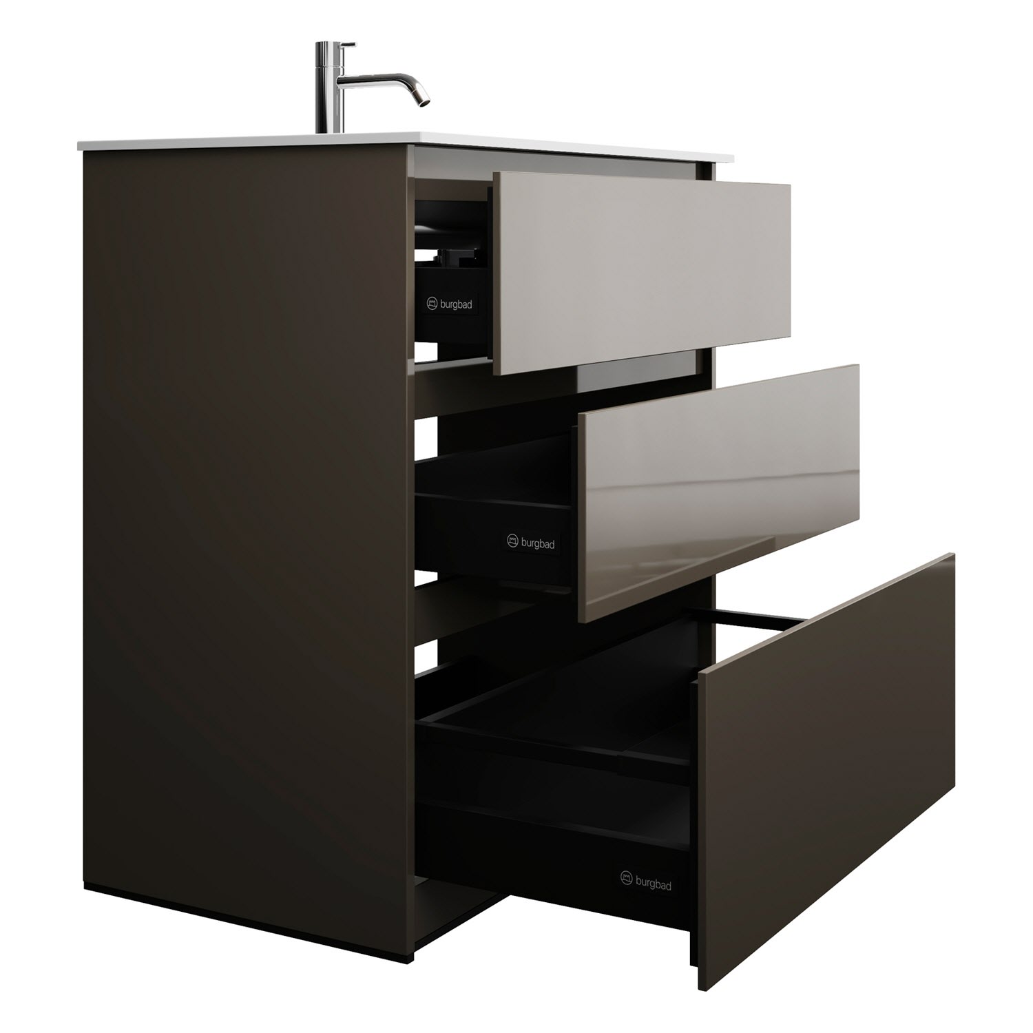 burgbad Lin20 Waschtischunterschrank mit Mineralguss-Waschtisch 82 cm, 3 Auszüge