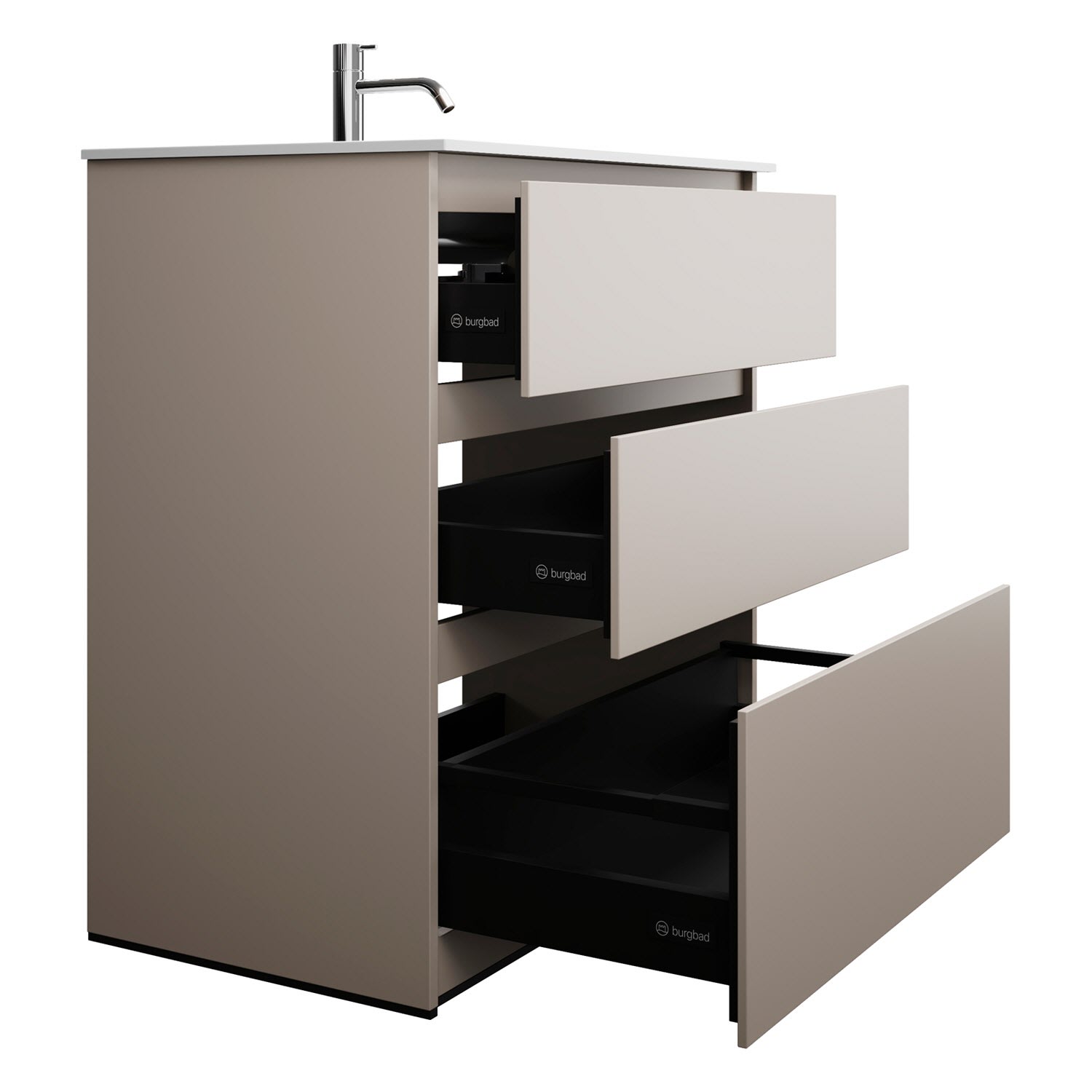 burgbad Lin20 Waschtischunterschrank mit Mineralguss-Waschtisch 82 cm, 3 Auszüge