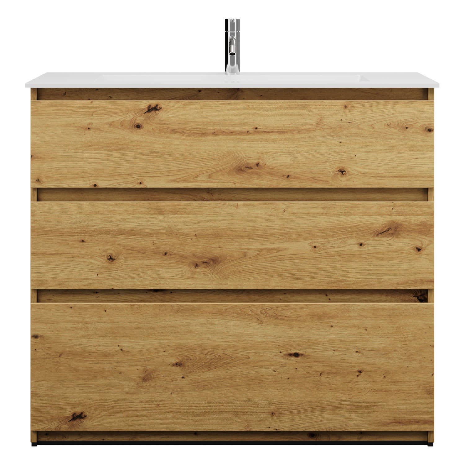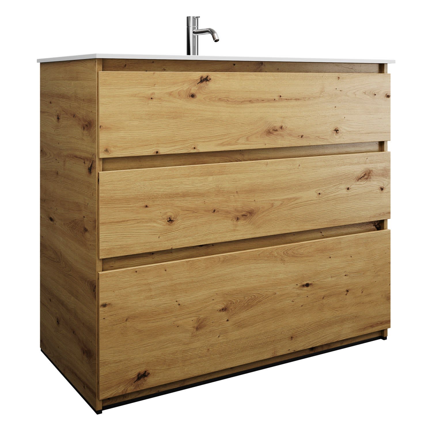 burgbad Lin20 Waschtischunterschrank mit Mineralguss-Waschtisch 102 cm, 3 Auszüge
