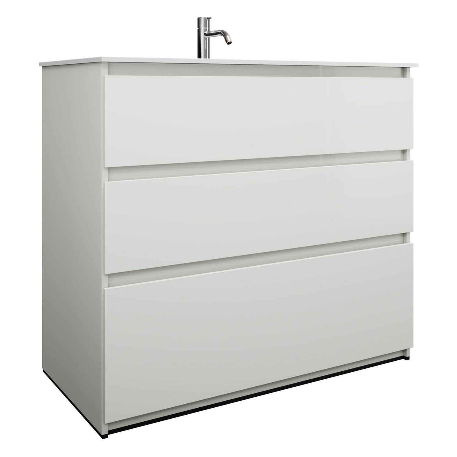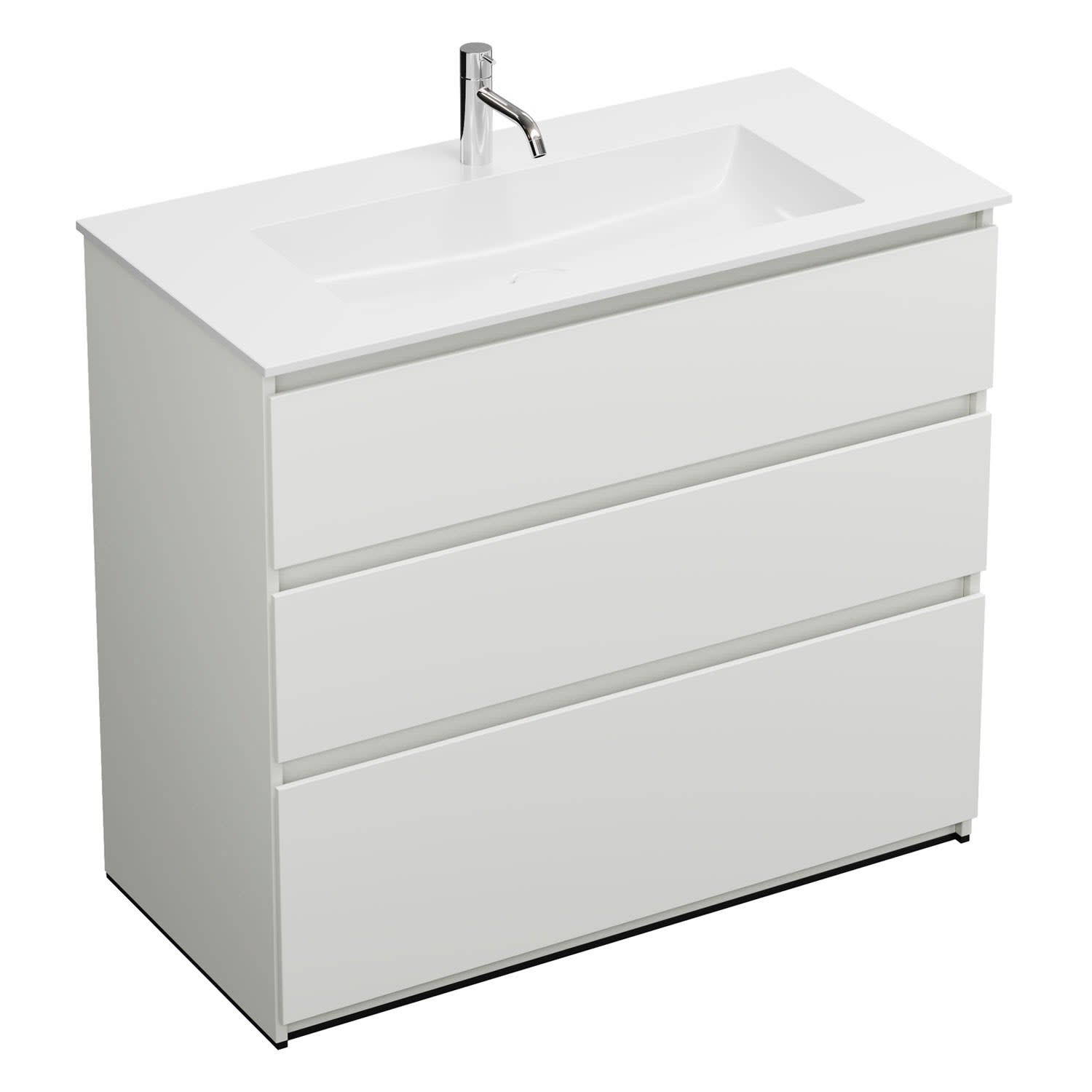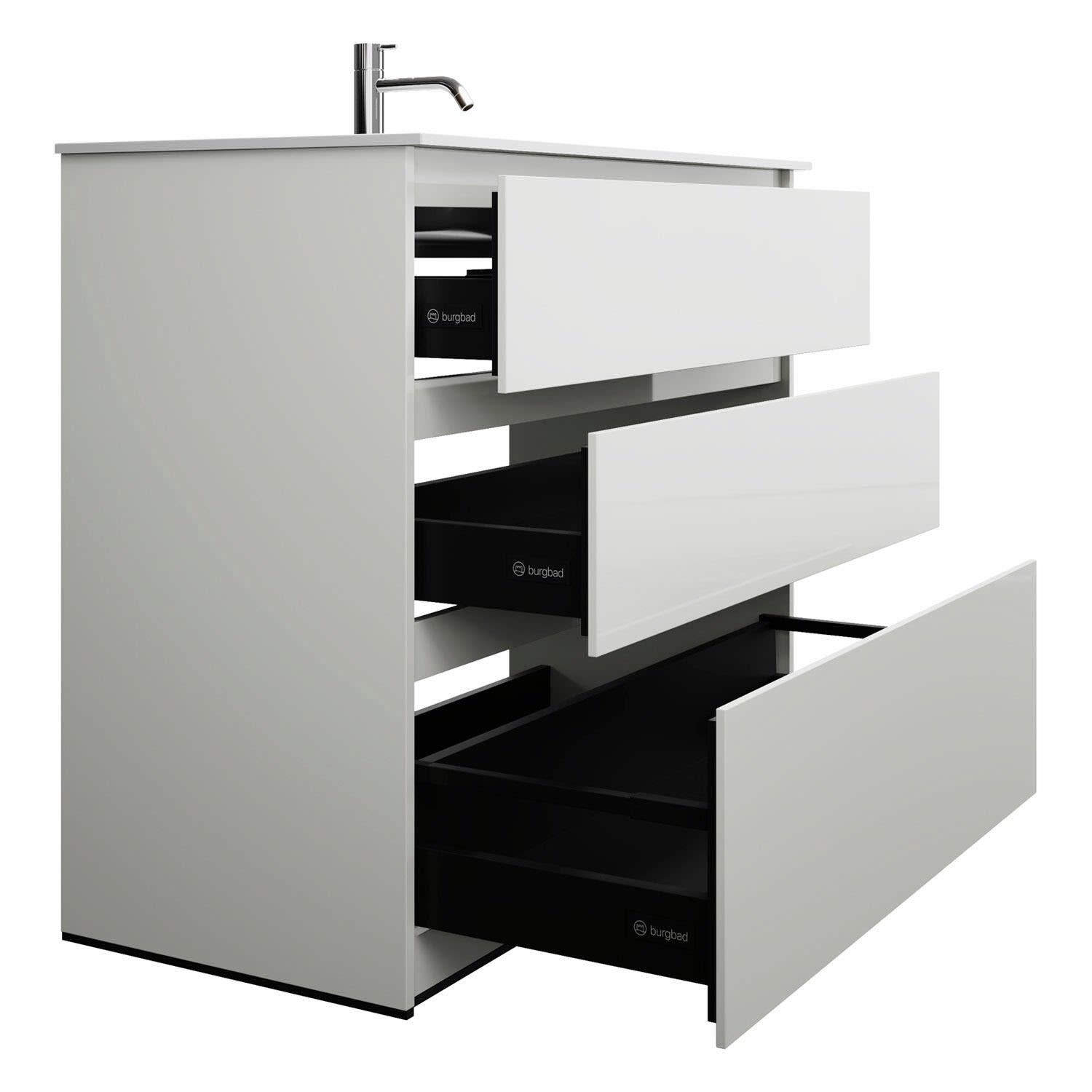 burgbad Lin20 Waschtischunterschrank mit Mineralguss-Waschtisch 102 cm, 3 Auszüge