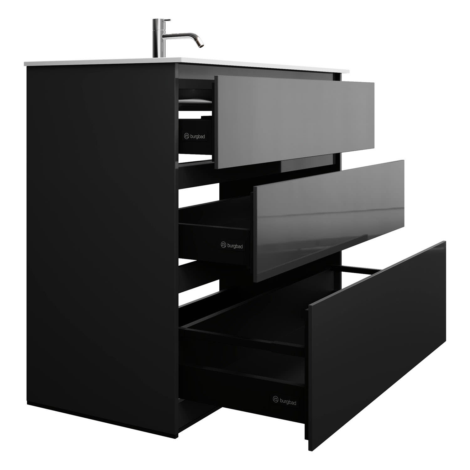 burgbad Lin20 Waschtischunterschrank mit Mineralguss-Waschtisch 102 cm, 3 Auszüge