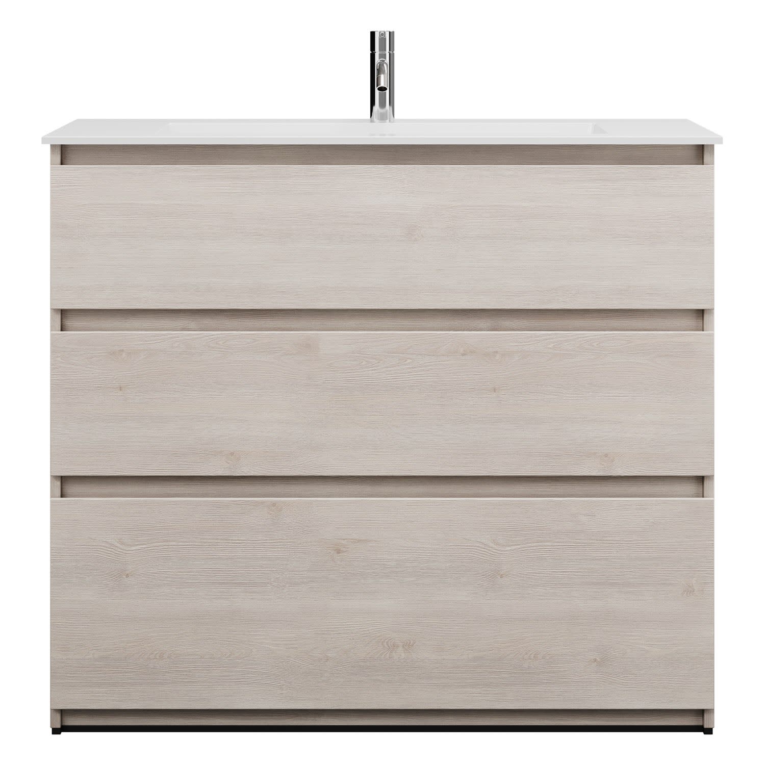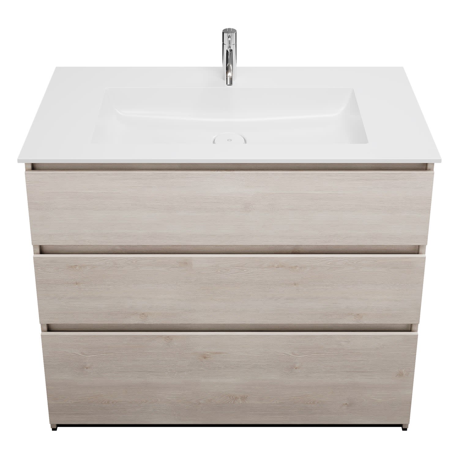 burgbad Lin20 Waschtischunterschrank mit Mineralguss-Waschtisch 102 cm, 3 Auszüge