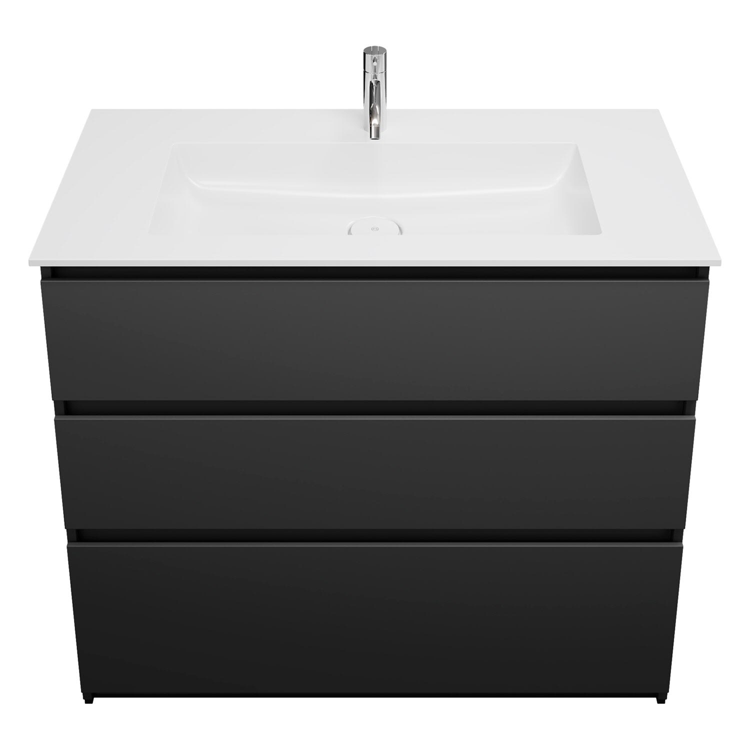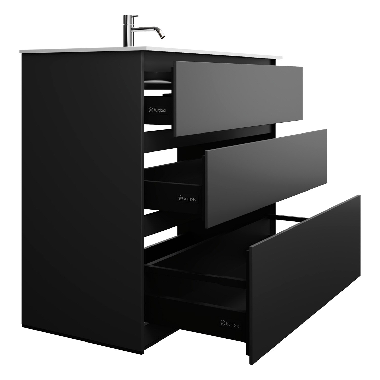 burgbad Lin20 Waschtischunterschrank mit Mineralguss-Waschtisch 102 cm, 3 Auszüge