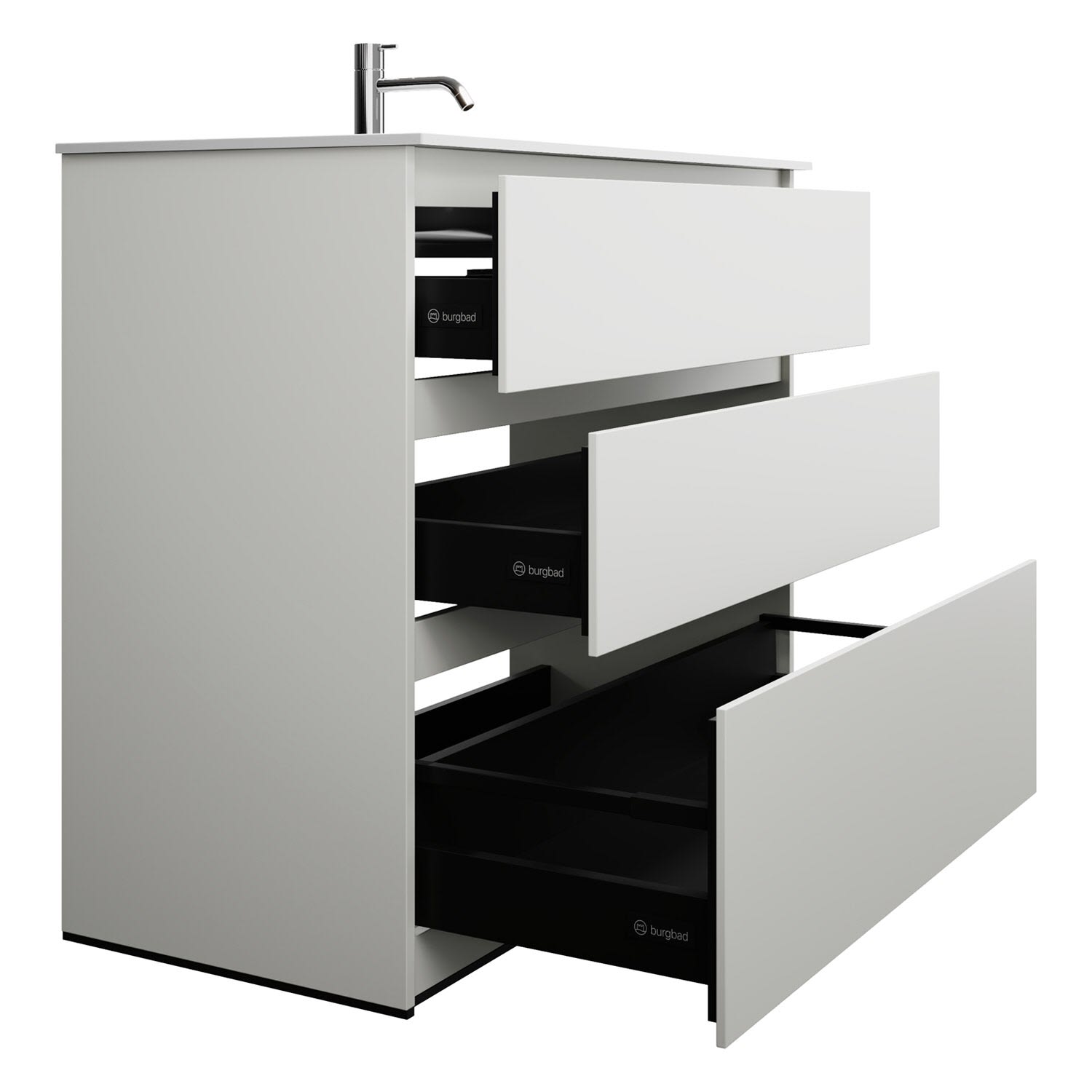 burgbad Lin20 Waschtischunterschrank mit Mineralguss-Waschtisch 102 cm, 3 Auszüge