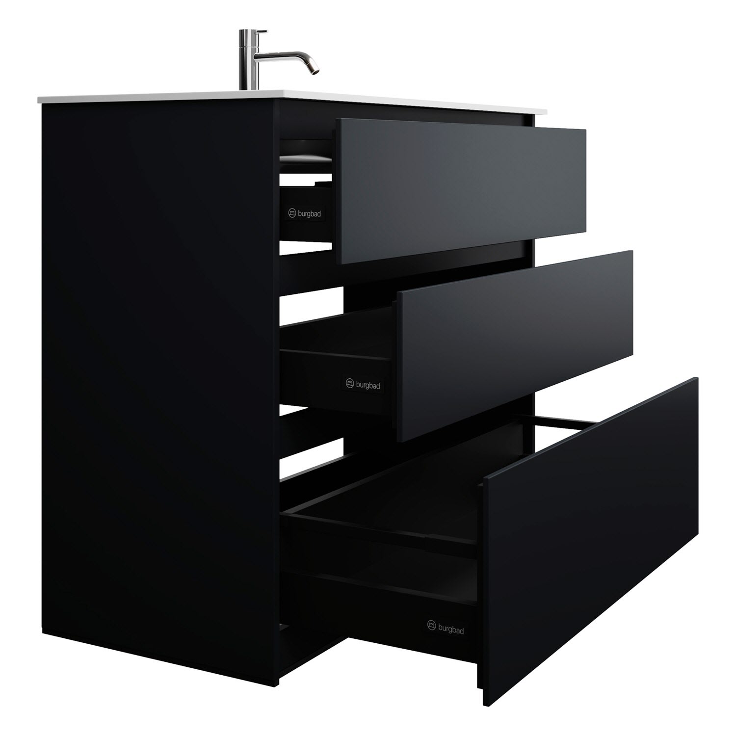 burgbad Lin20 Waschtischunterschrank mit Mineralguss-Waschtisch 102 cm, 3 Auszüge