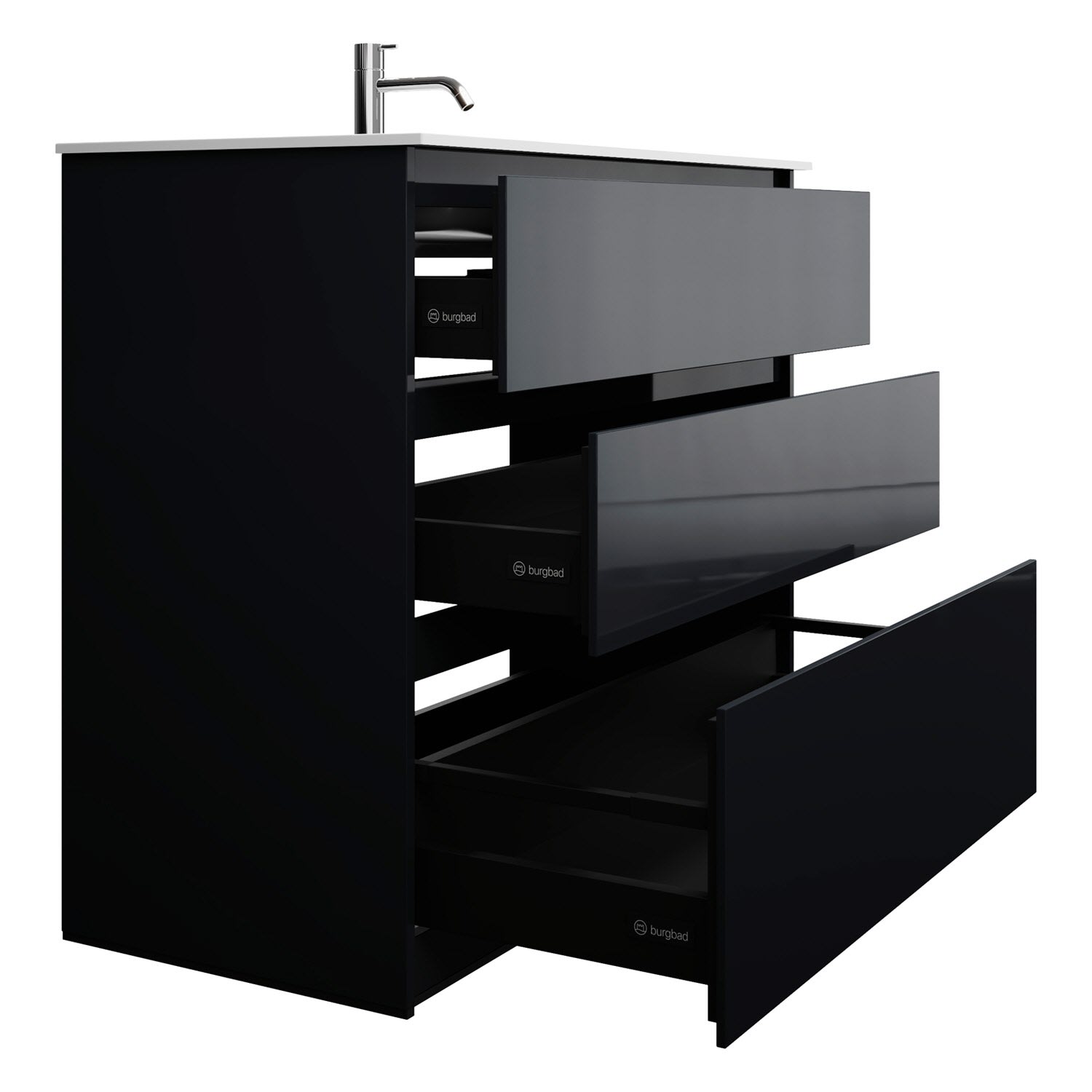 burgbad Lin20 Waschtischunterschrank mit Mineralguss-Waschtisch 102 cm, 3 Auszüge