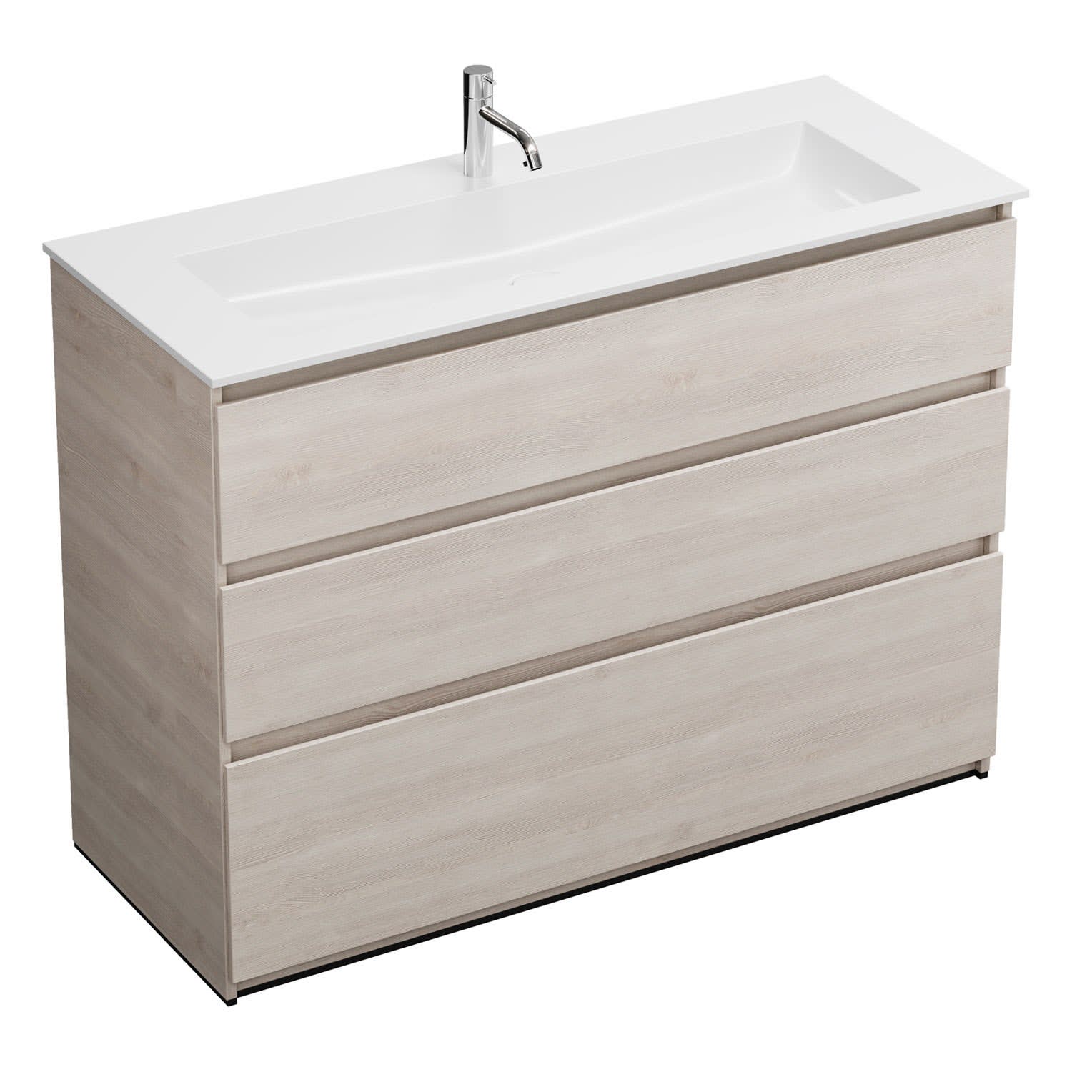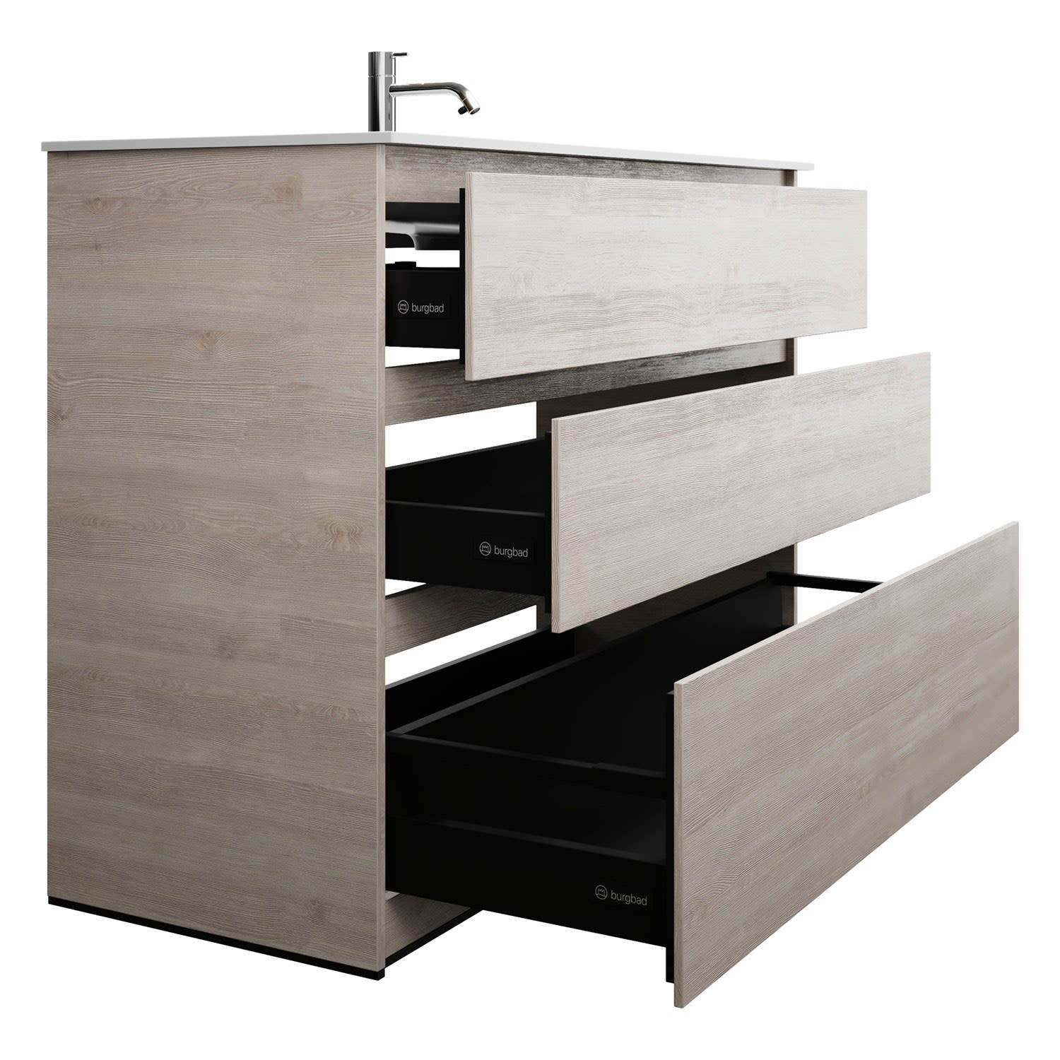 burgbad Lin20 Waschtischunterschrank mit Mineralguss-Waschtisch 122 cm, 3 Auszüge