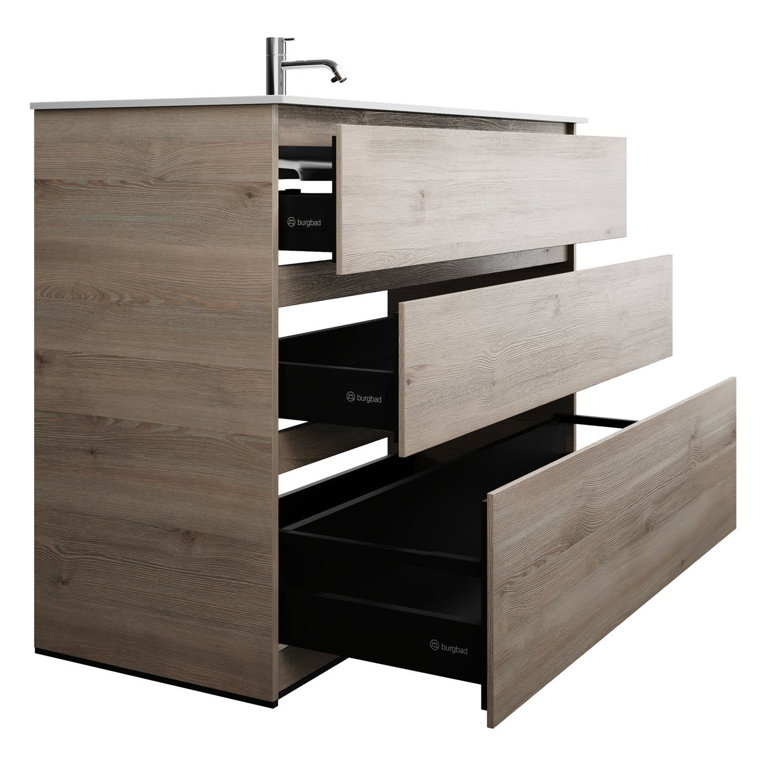 burgbad Lin20 Waschtischunterschrank mit Mineralguss-Waschtisch 122 cm, 3 Auszüge