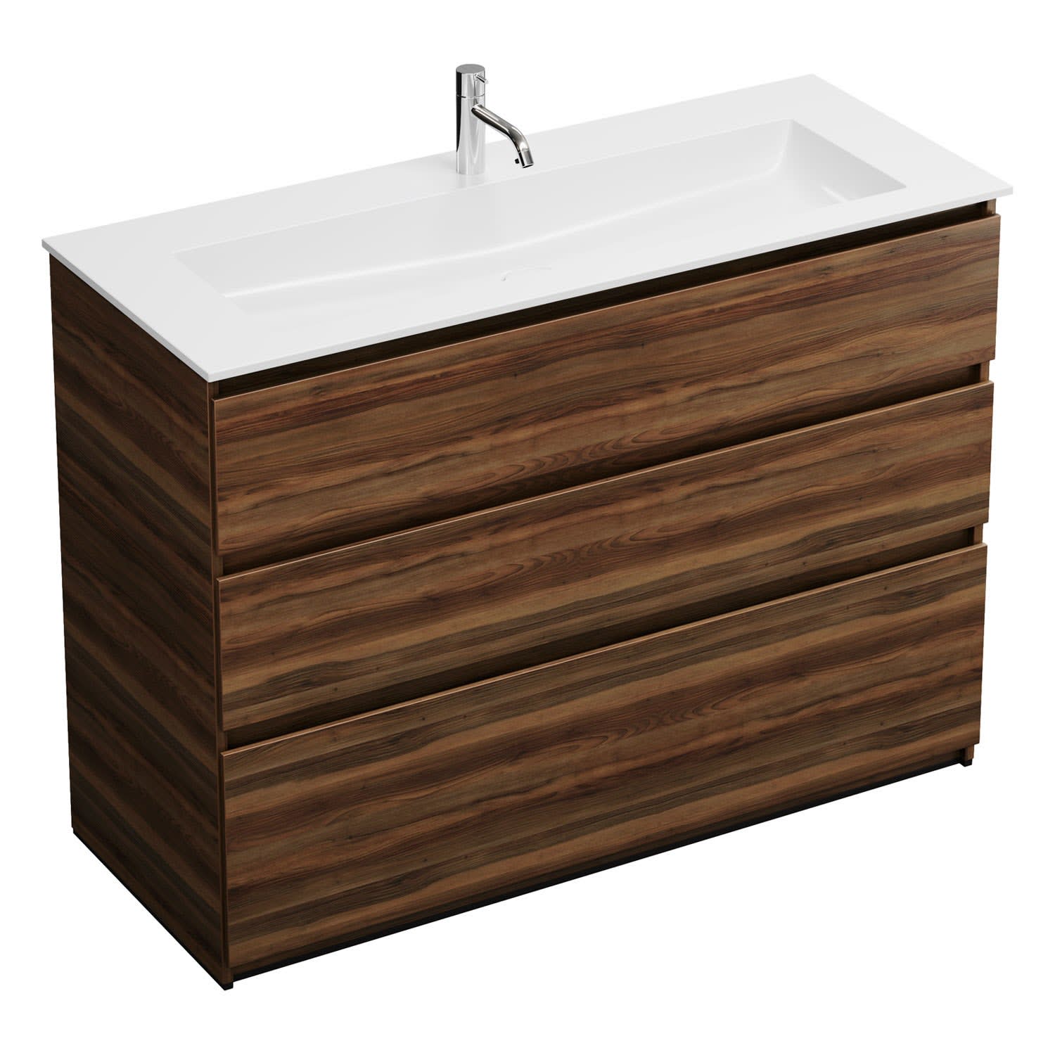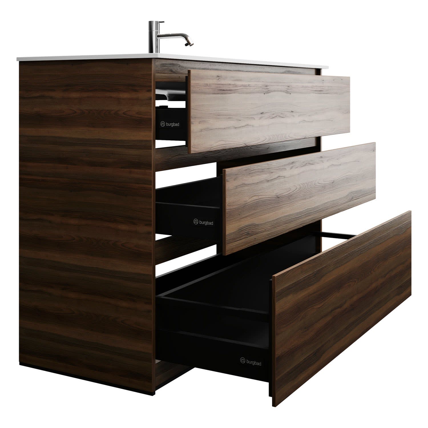 burgbad Lin20 Waschtischunterschrank mit Mineralguss-Waschtisch 122 cm, 3 Auszüge