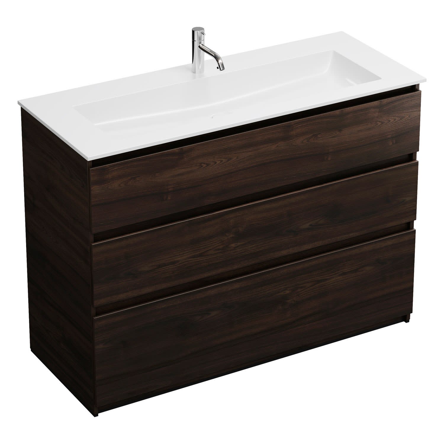 burgbad Lin20 Waschtischunterschrank mit Mineralguss-Waschtisch 122 cm, 3 Auszüge