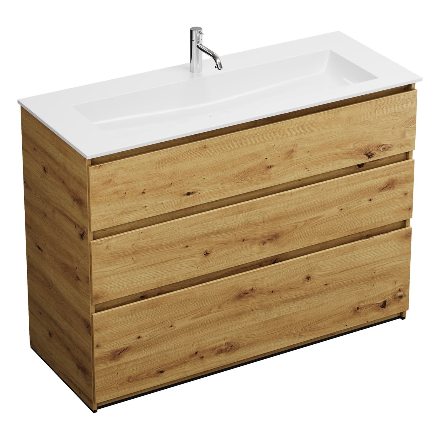 burgbad Lin20 Waschtischunterschrank mit Mineralguss-Waschtisch 122 cm, 3 Auszüge