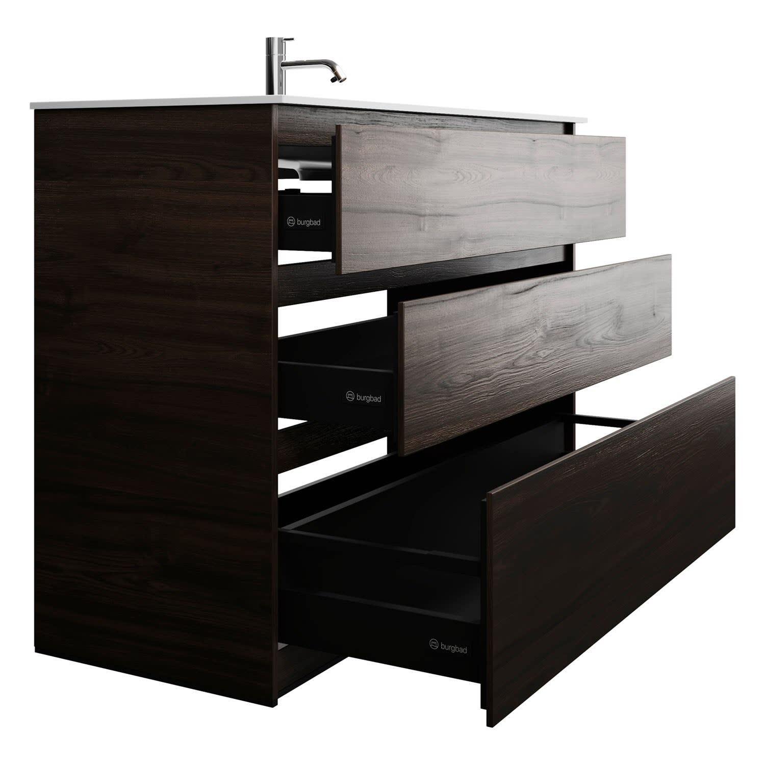 burgbad Lin20 Waschtischunterschrank mit Mineralguss-Waschtisch 122 cm, 3 Auszüge