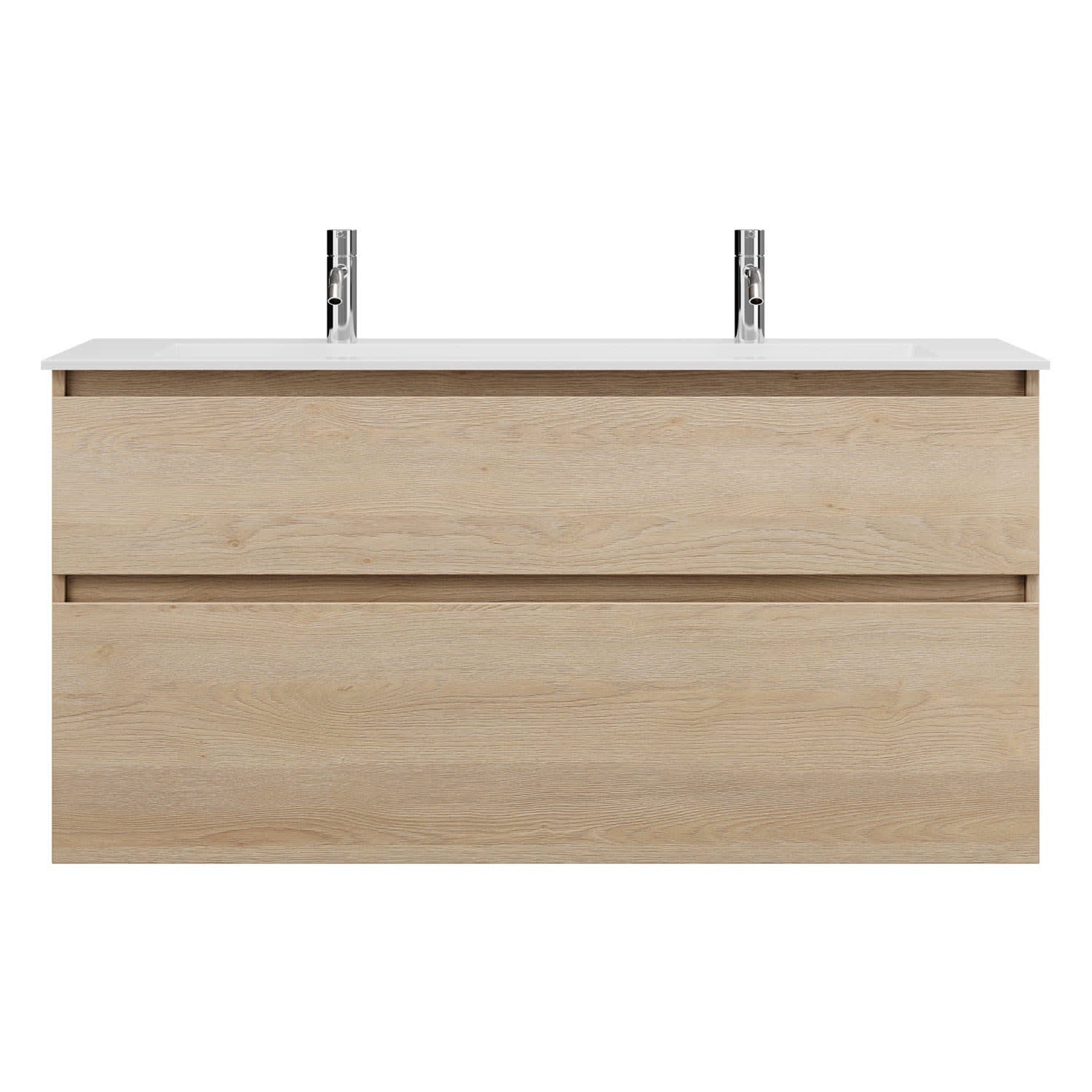 Duravit D-Code Waschtischunterschrank 120 cm mit Keramik-Doppelwaschtisch, mit 2 Auszügen, Griff chrom