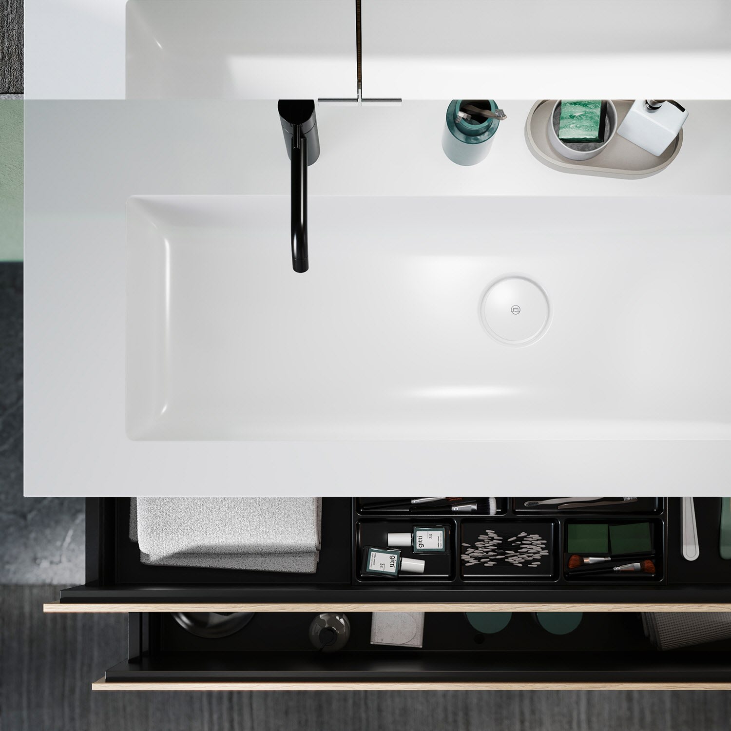burgbad Cleanflow+ Ablaufabdeckung mit Staufunktion für burgbad Mineralguss-Waschtische