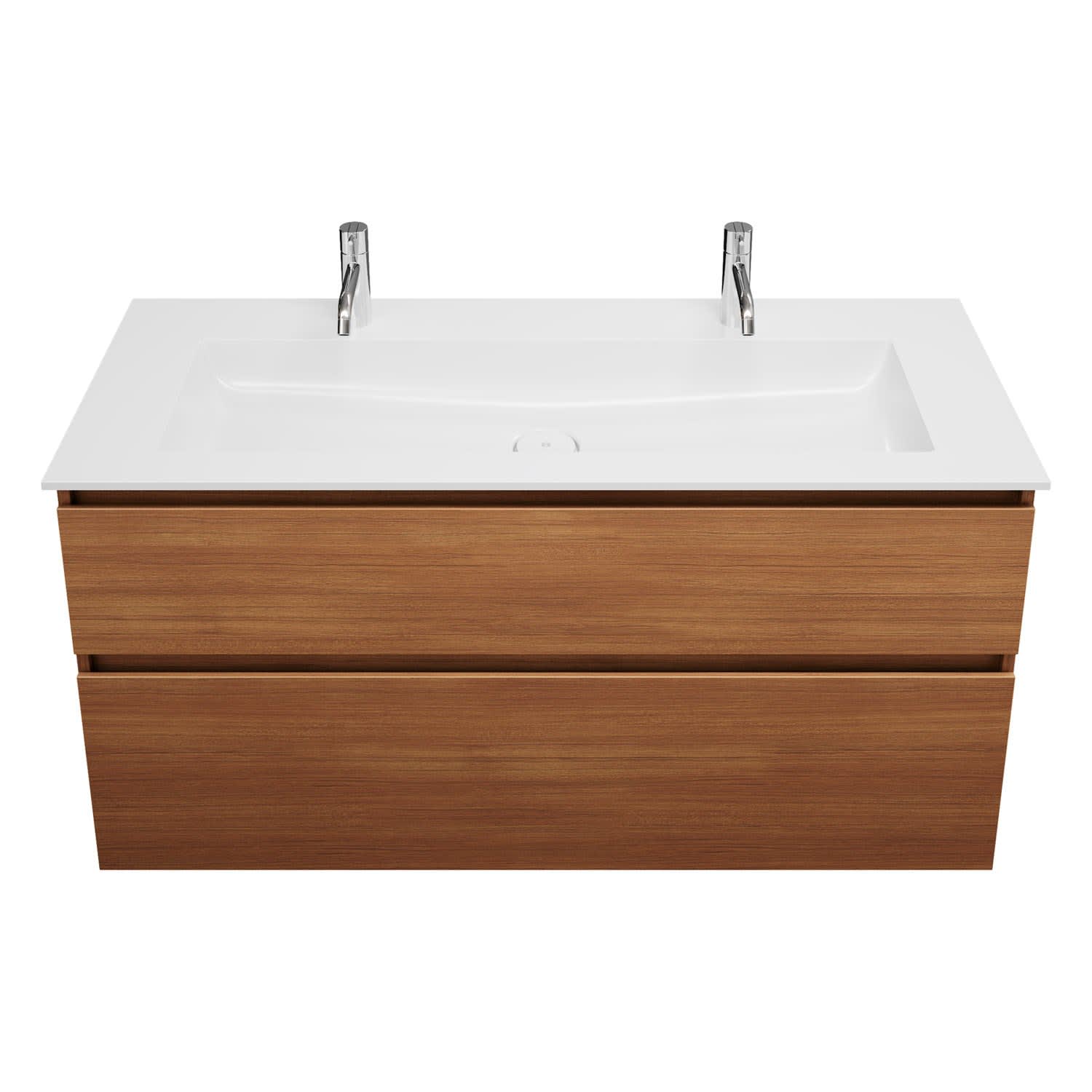 Duravit D-Code Waschtischunterschrank 120 cm mit Keramik-Doppelwaschtisch, mit 2 Auszügen, Griff chrom