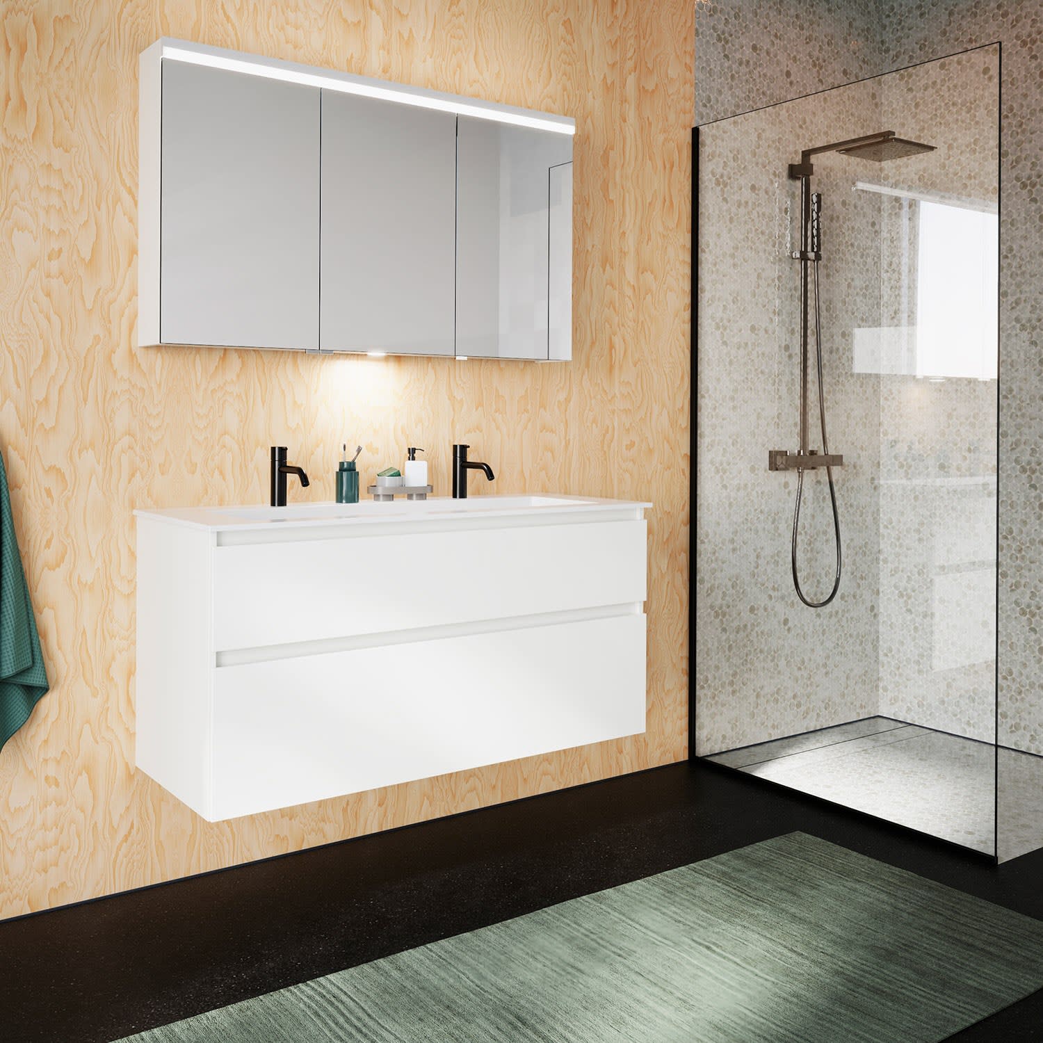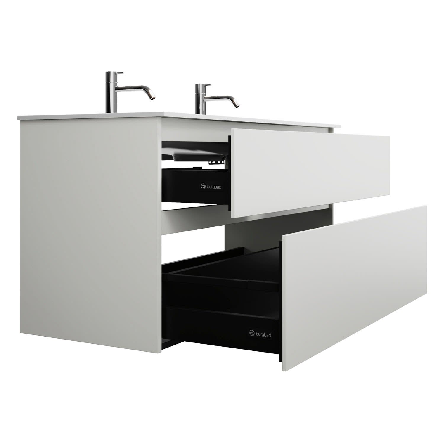 burgbad Lin20 Waschtischunterschrank mit Mineralguss-Waschtisch 122 cm, 2 Auszüge