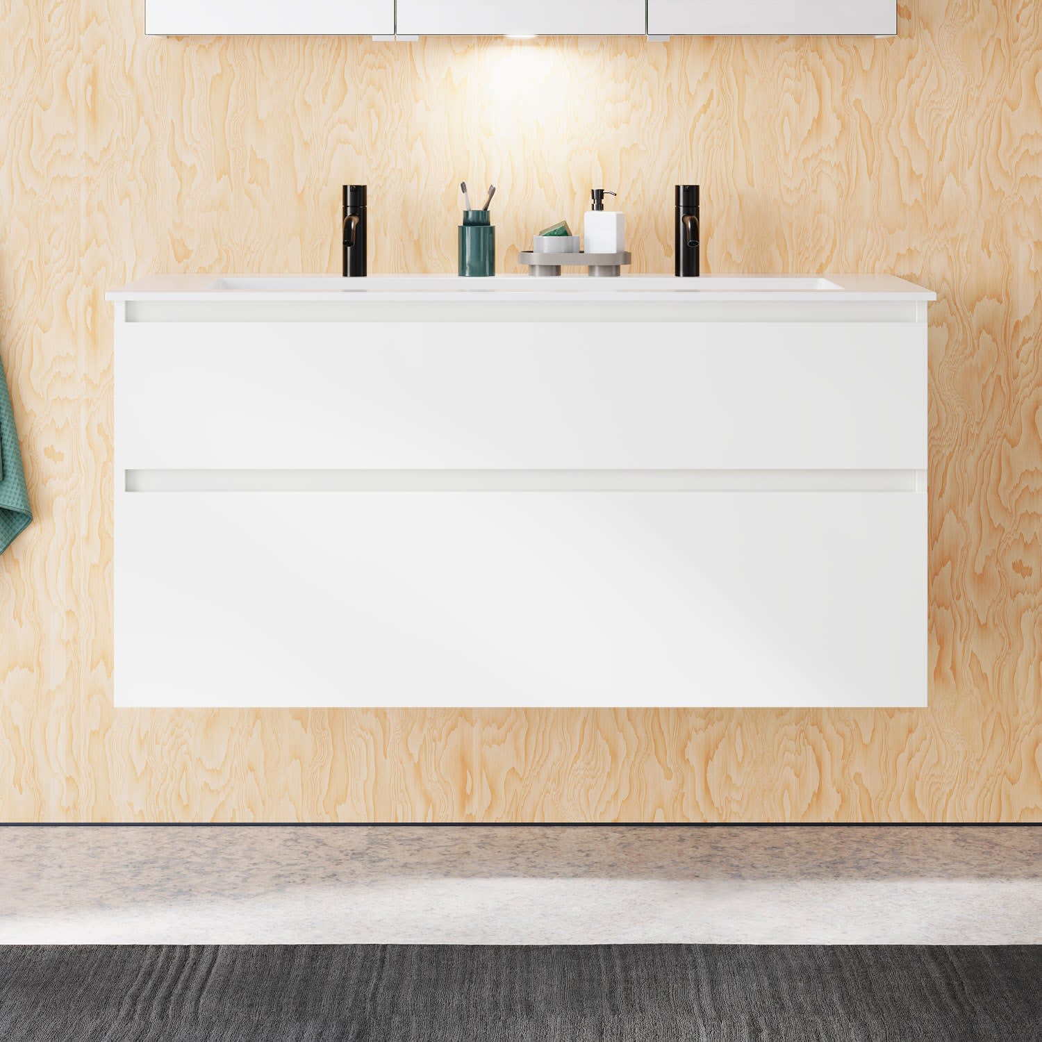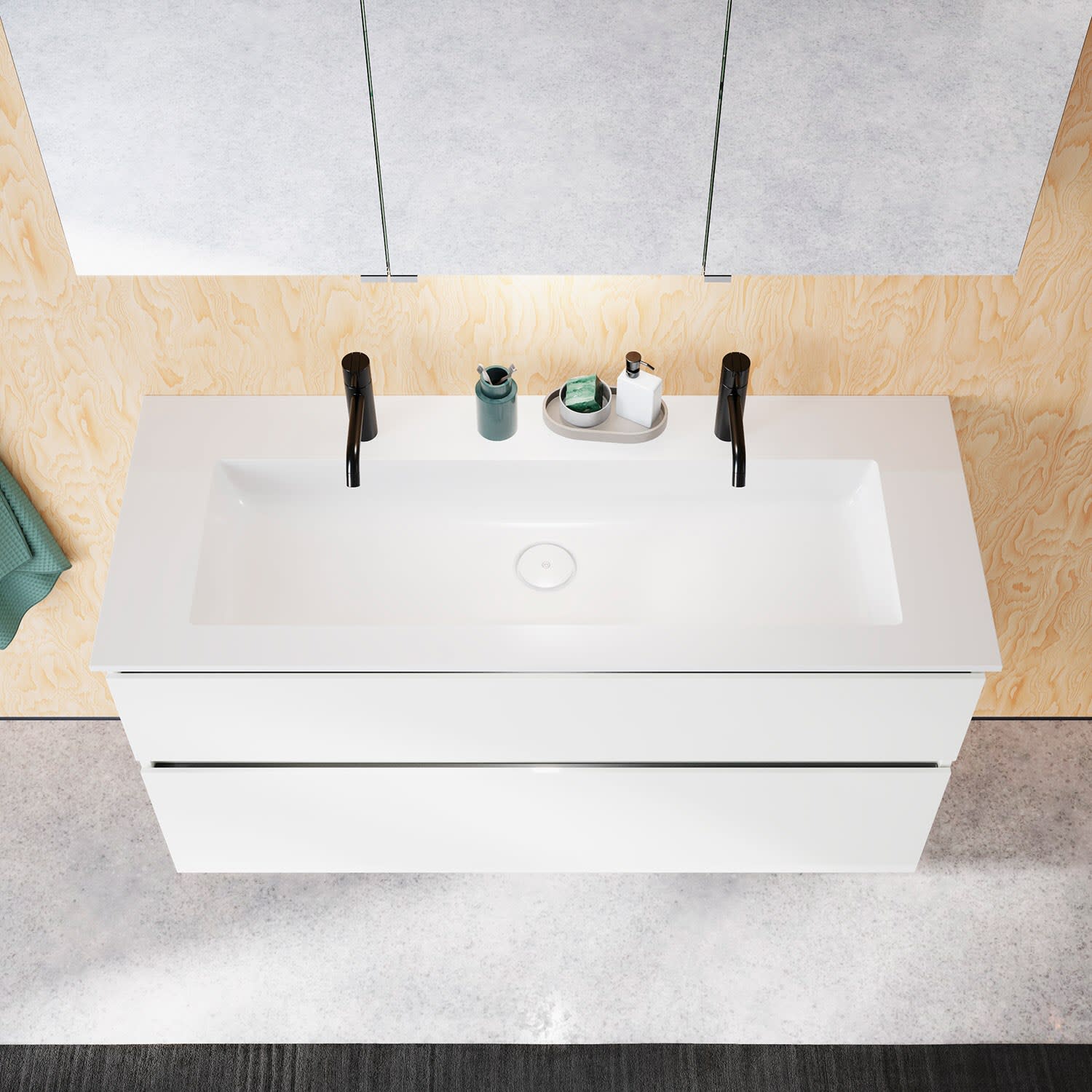 burgbad Lin20 Waschtischunterschrank mit Mineralguss-Waschtisch 122 cm, 2 Auszüge