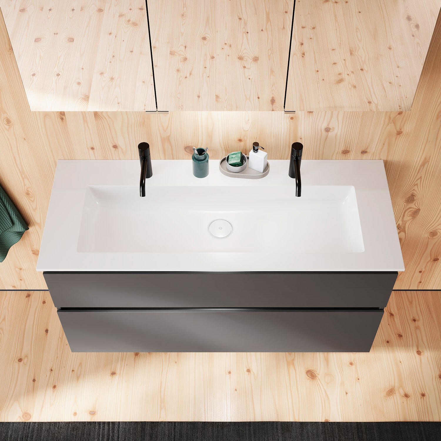 burgbad Lin20 Waschtischunterschrank mit Mineralguss-Waschtisch 122 cm, 2 Auszüge