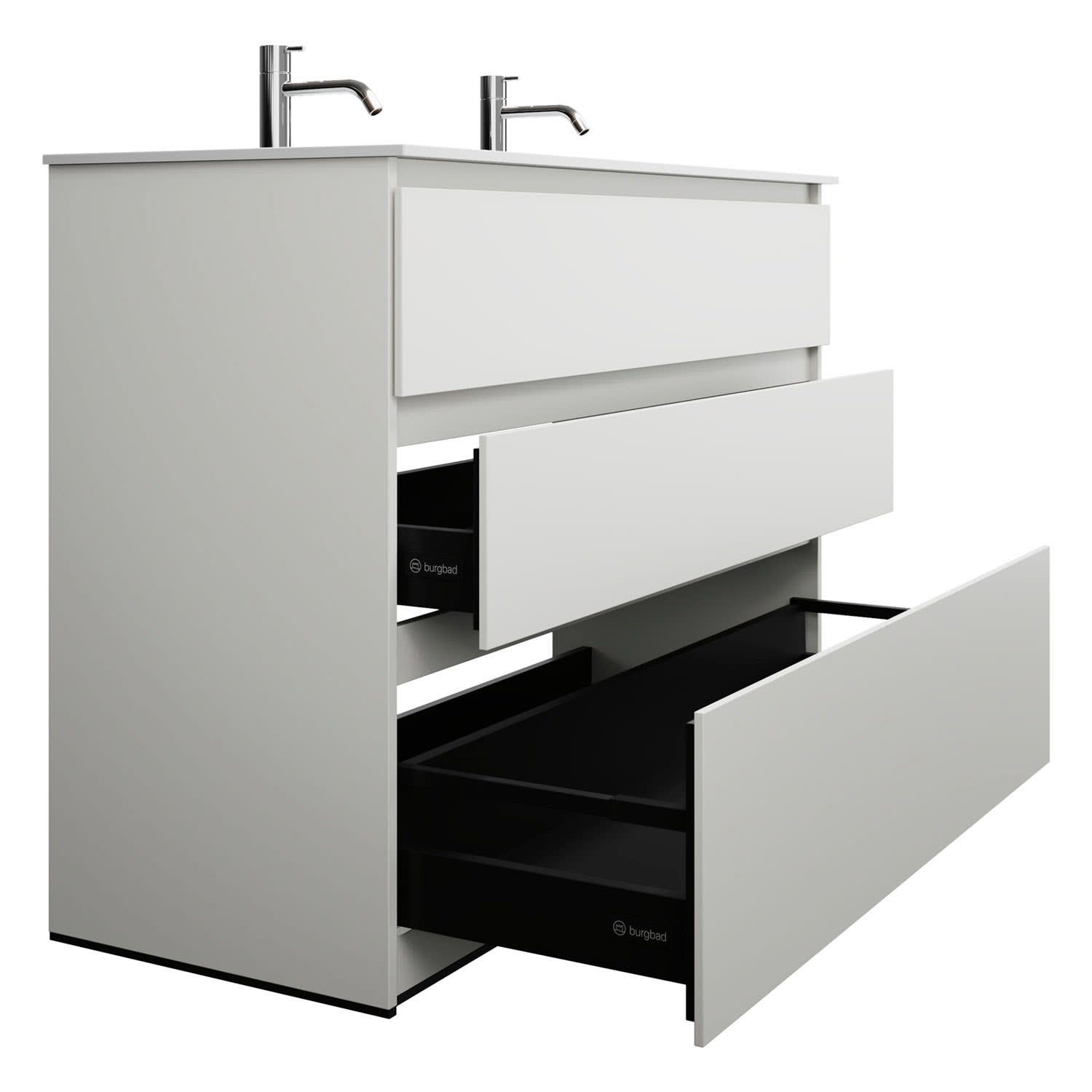 burgbad Lin20 Waschtischunterschrank mit Mineralguss-Waschtisch 122 cm, 3 Auszüge