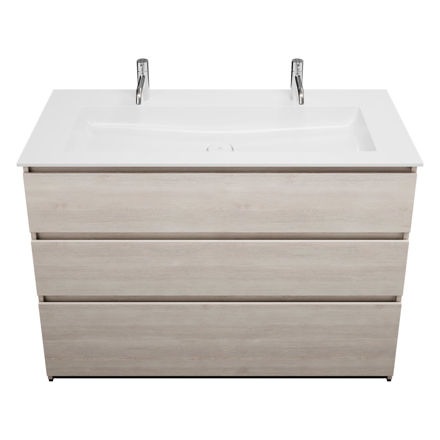 burgbad Lin20 Waschtischunterschrank mit Mineralguss-Waschtisch 122 cm, 3 Auszüge