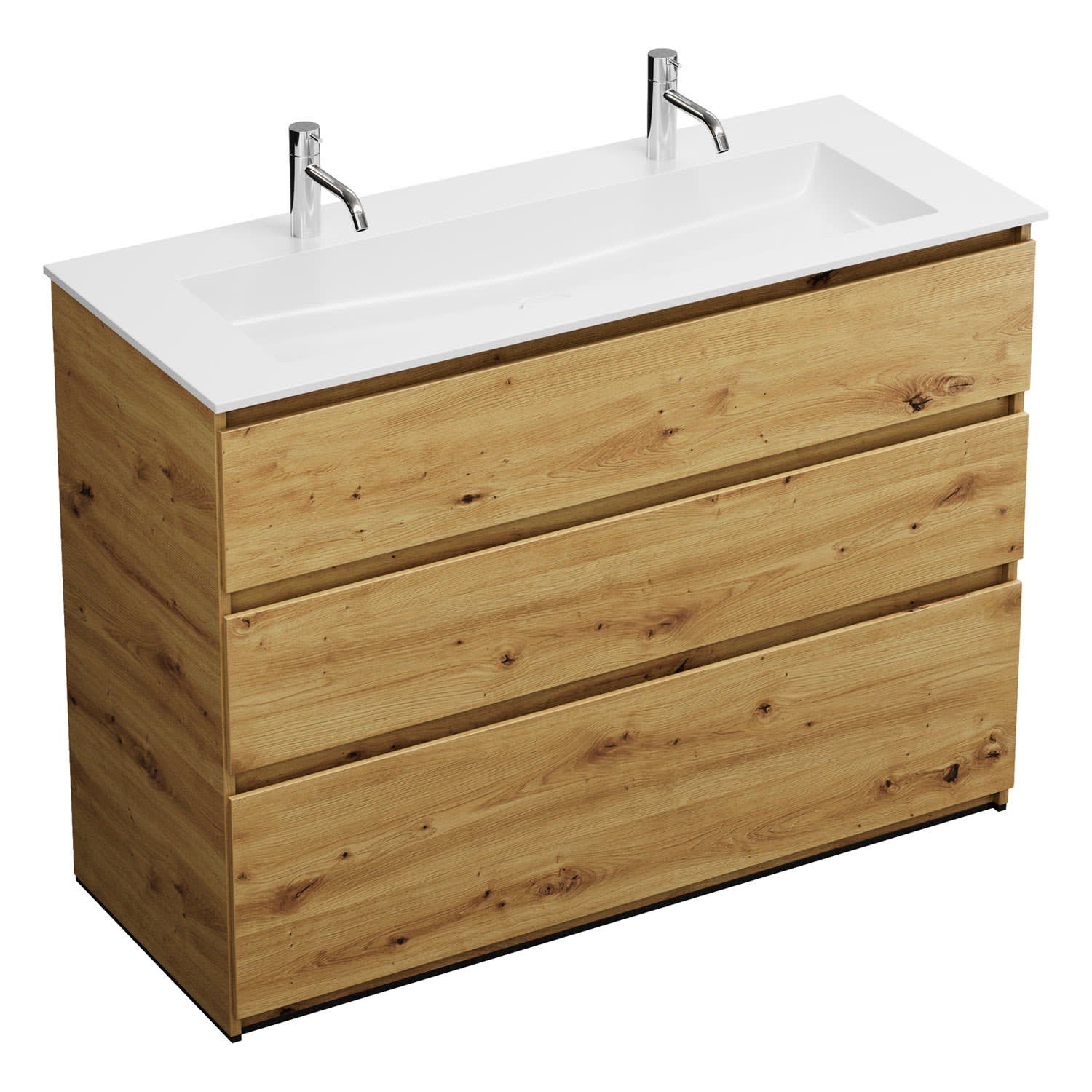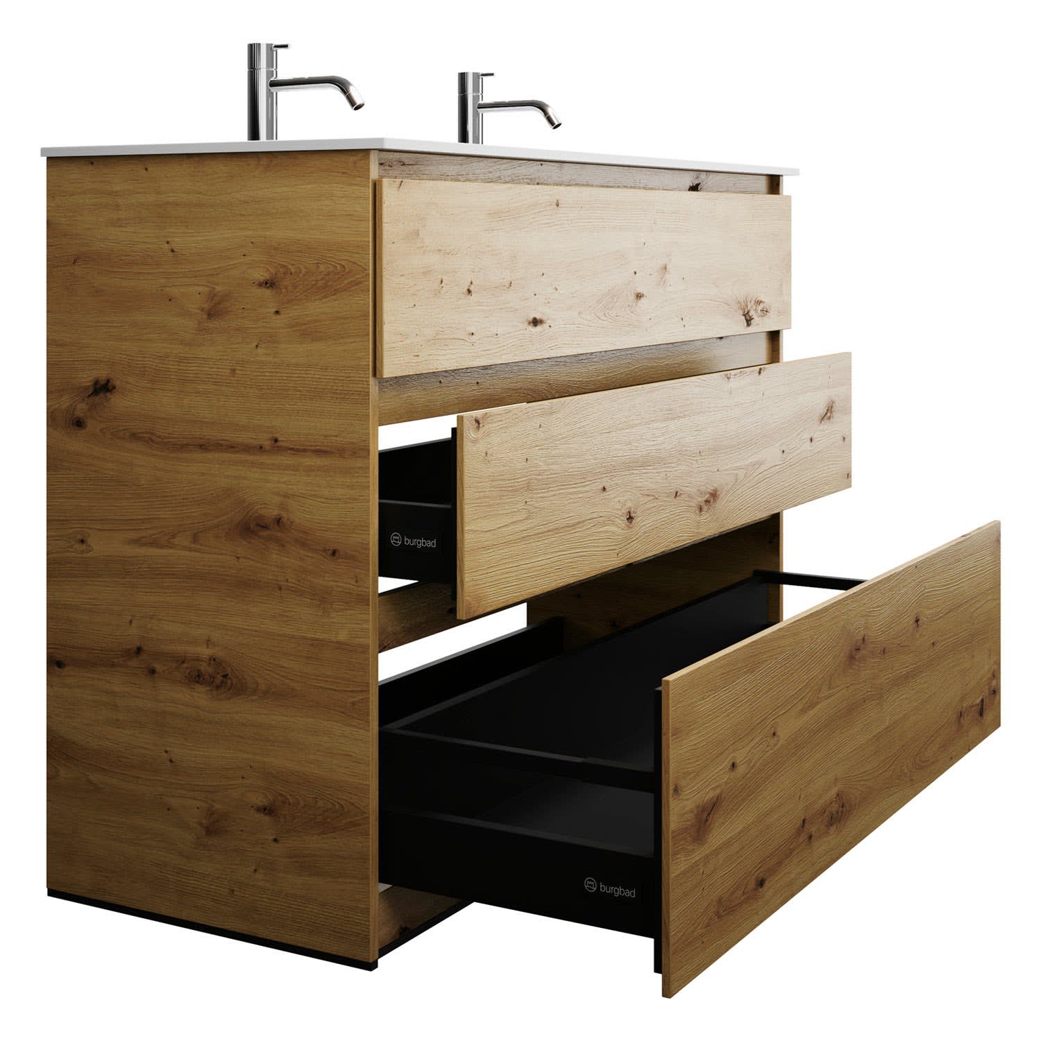 burgbad Lin20 Waschtischunterschrank mit Mineralguss-Waschtisch 122 cm, 3 Auszüge