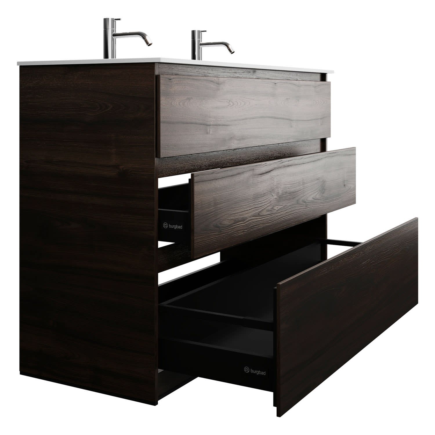 burgbad Lin20 Waschtischunterschrank mit Mineralguss-Waschtisch 122 cm, 3 Auszüge