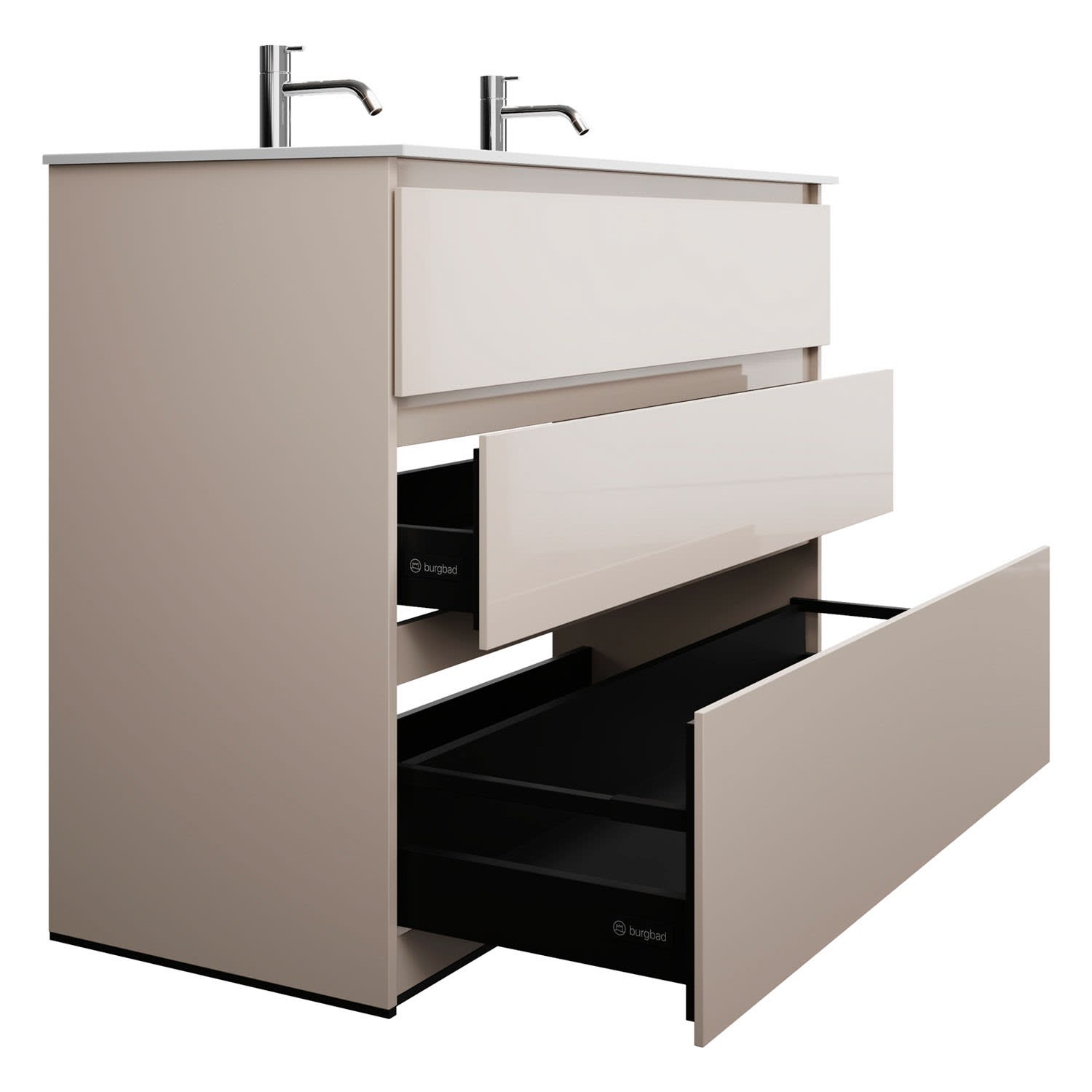 burgbad Lin20 Waschtischunterschrank mit Mineralguss-Waschtisch 122 cm, 3 Auszüge