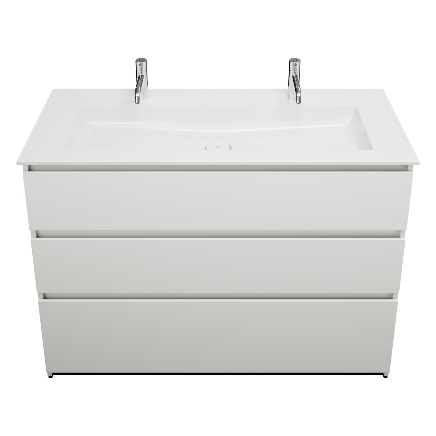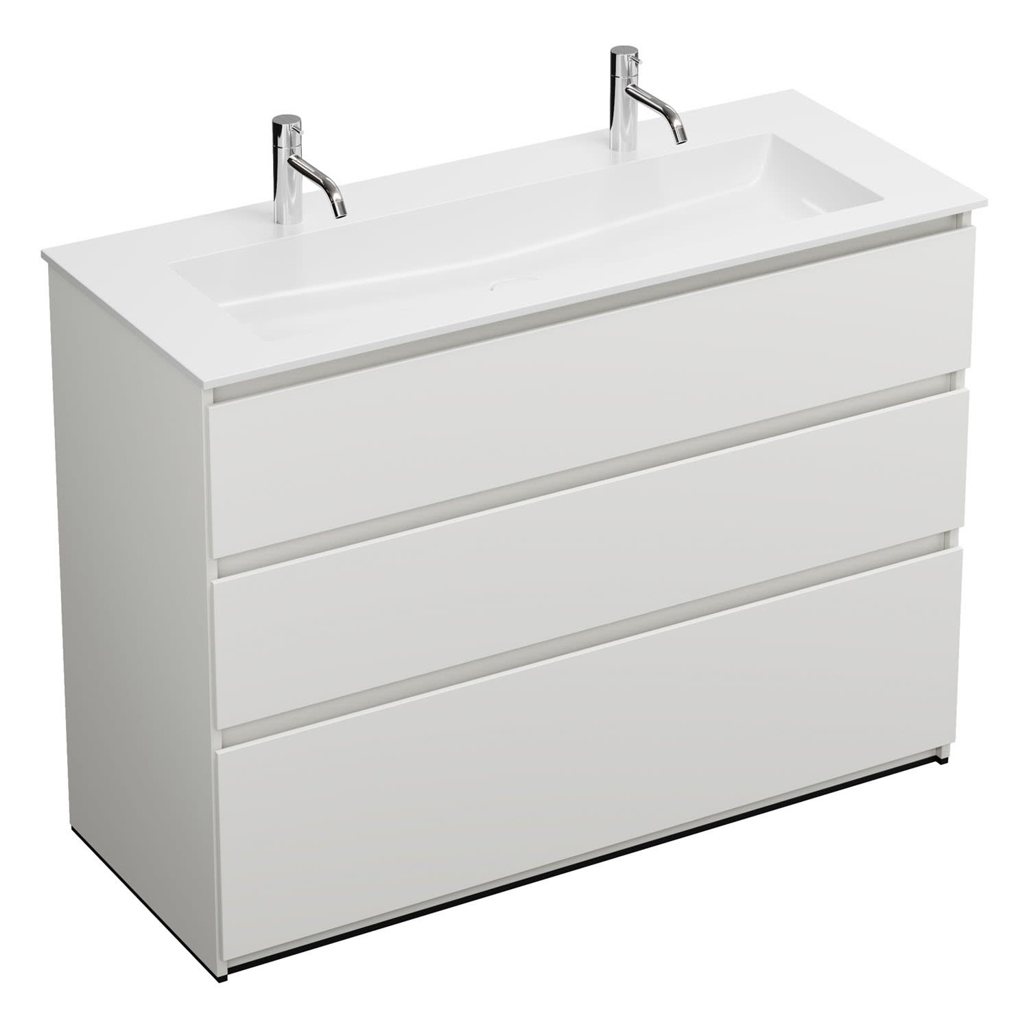 burgbad Lin20 Waschtischunterschrank mit Mineralguss-Waschtisch 122 cm, 3 Auszüge
