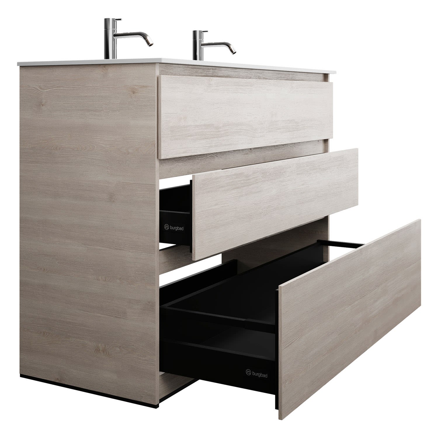 burgbad Lin20 Waschtischunterschrank mit Mineralguss-Waschtisch 122 cm, 3 Auszüge