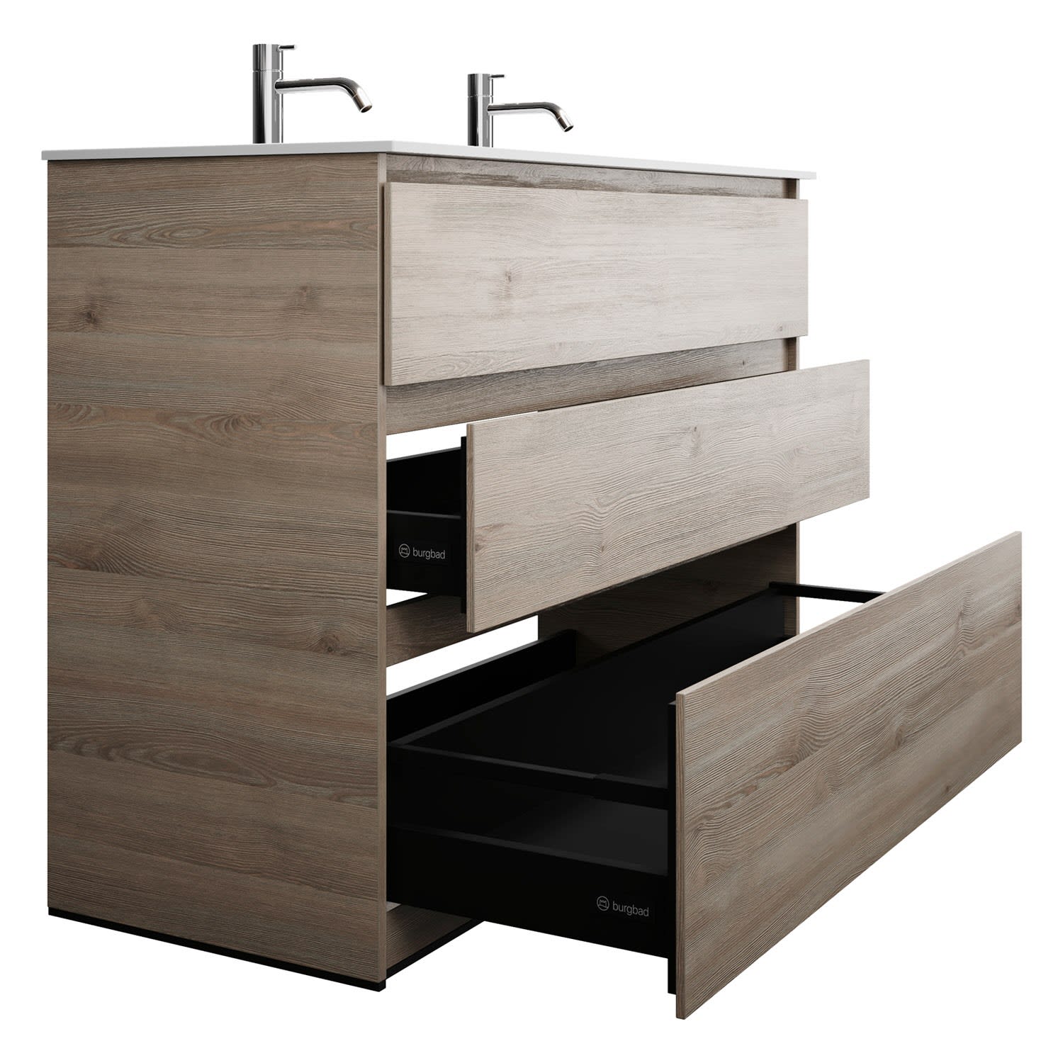burgbad Lin20 Waschtischunterschrank mit Mineralguss-Waschtisch 122 cm, 3 Auszüge