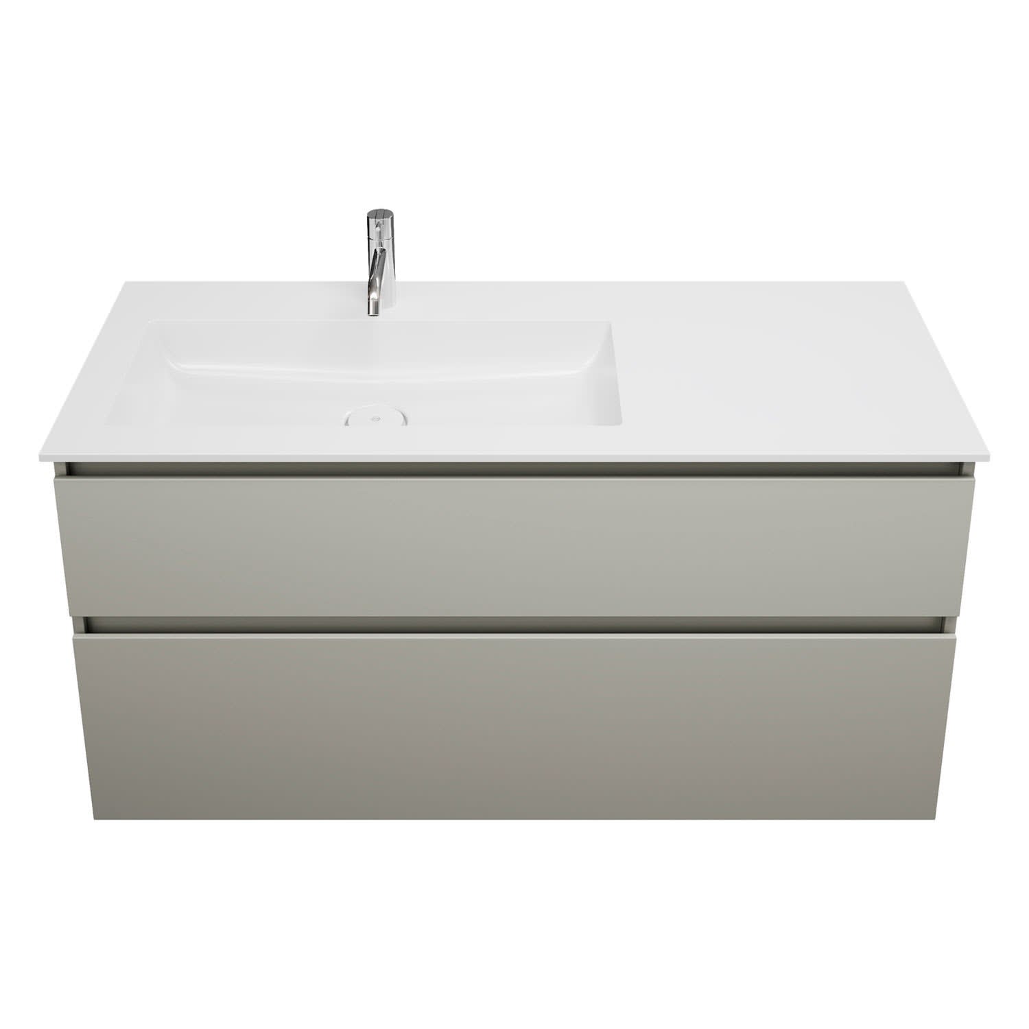 burgbad Lin20 Waschtischunterschrank mit Mineralguss-Waschtisch 122 cm, 2 Auszüge, links