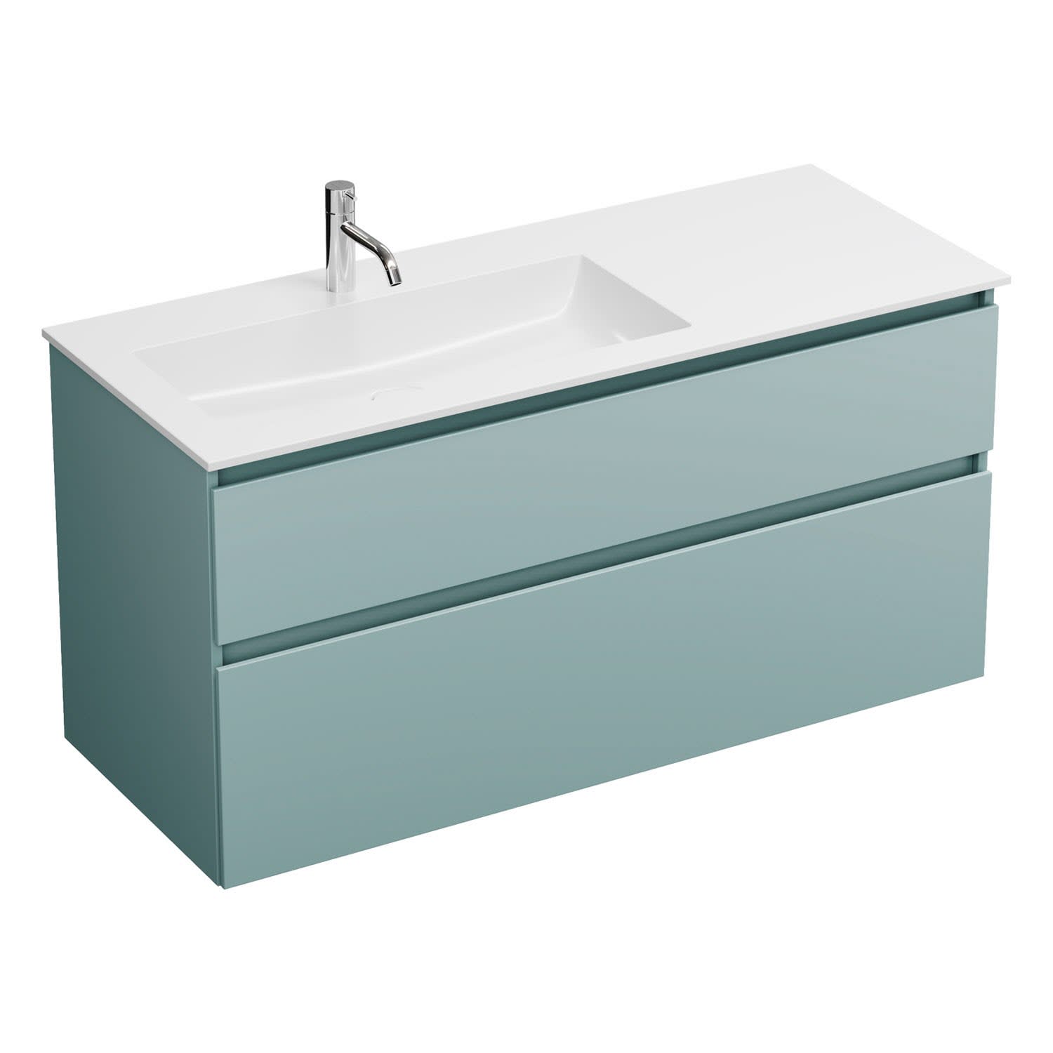 burgbad Lin20 Waschtischunterschrank mit Mineralguss-Waschtisch 122 cm, 2 Auszüge, links