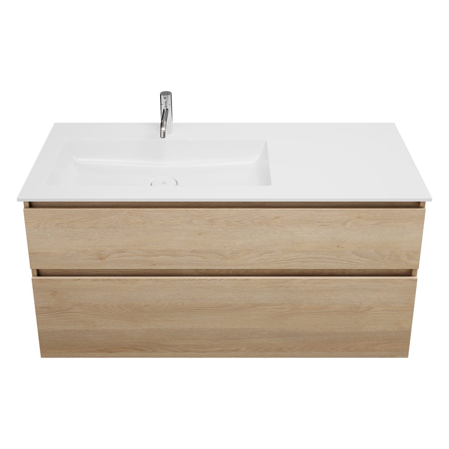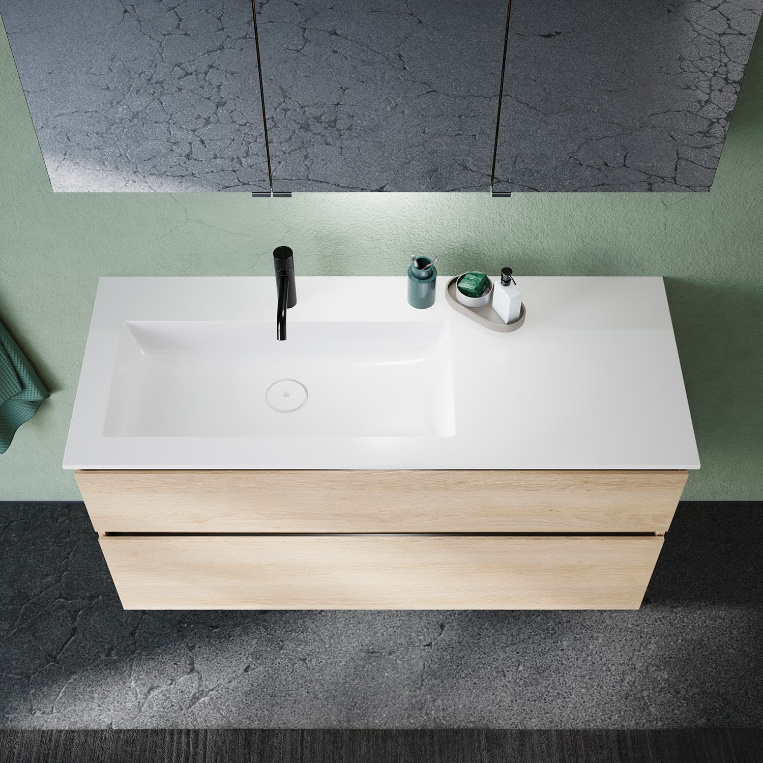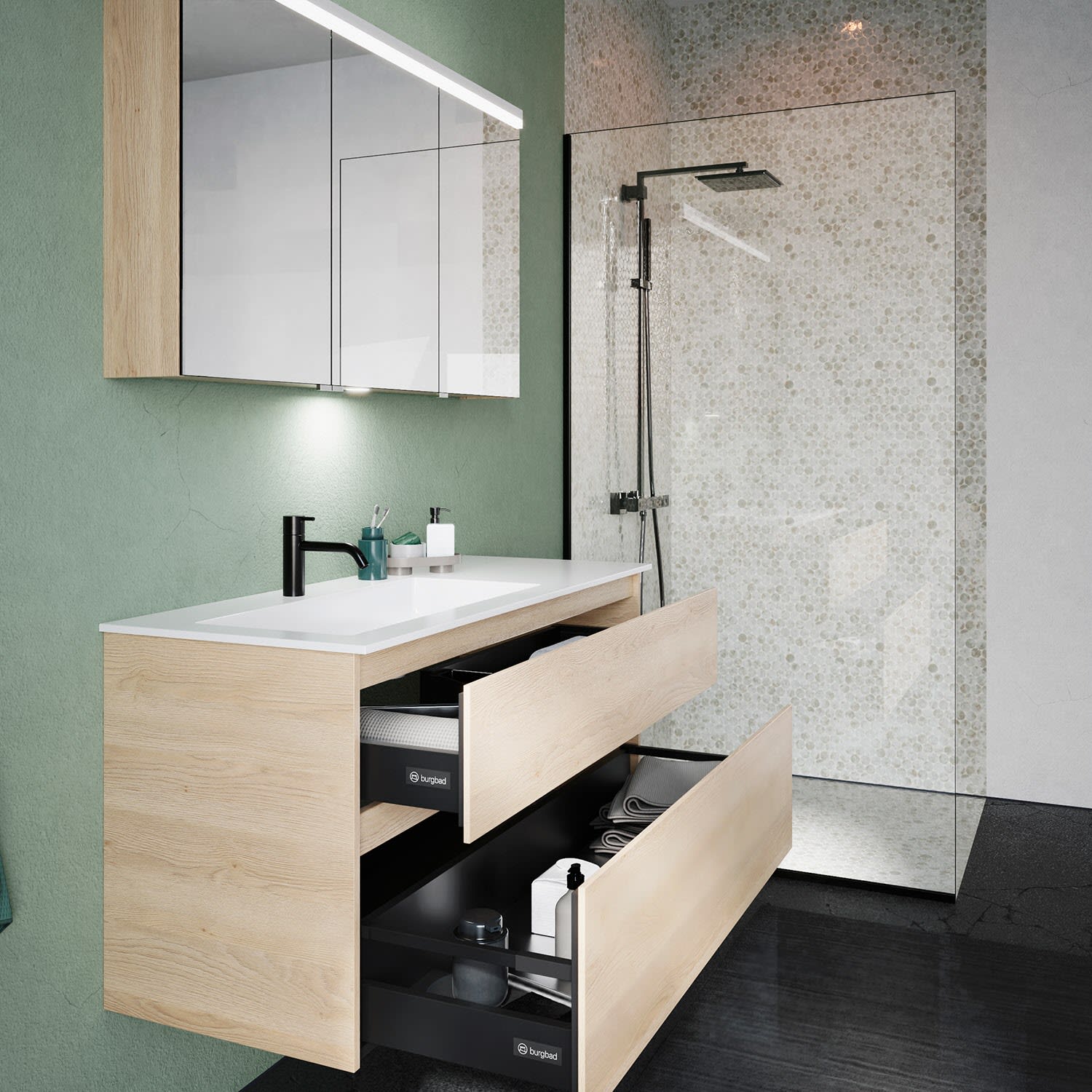 burgbad Lin20 Waschtischunterschrank mit Mineralguss-Waschtisch 122 cm, 2 Auszüge, links