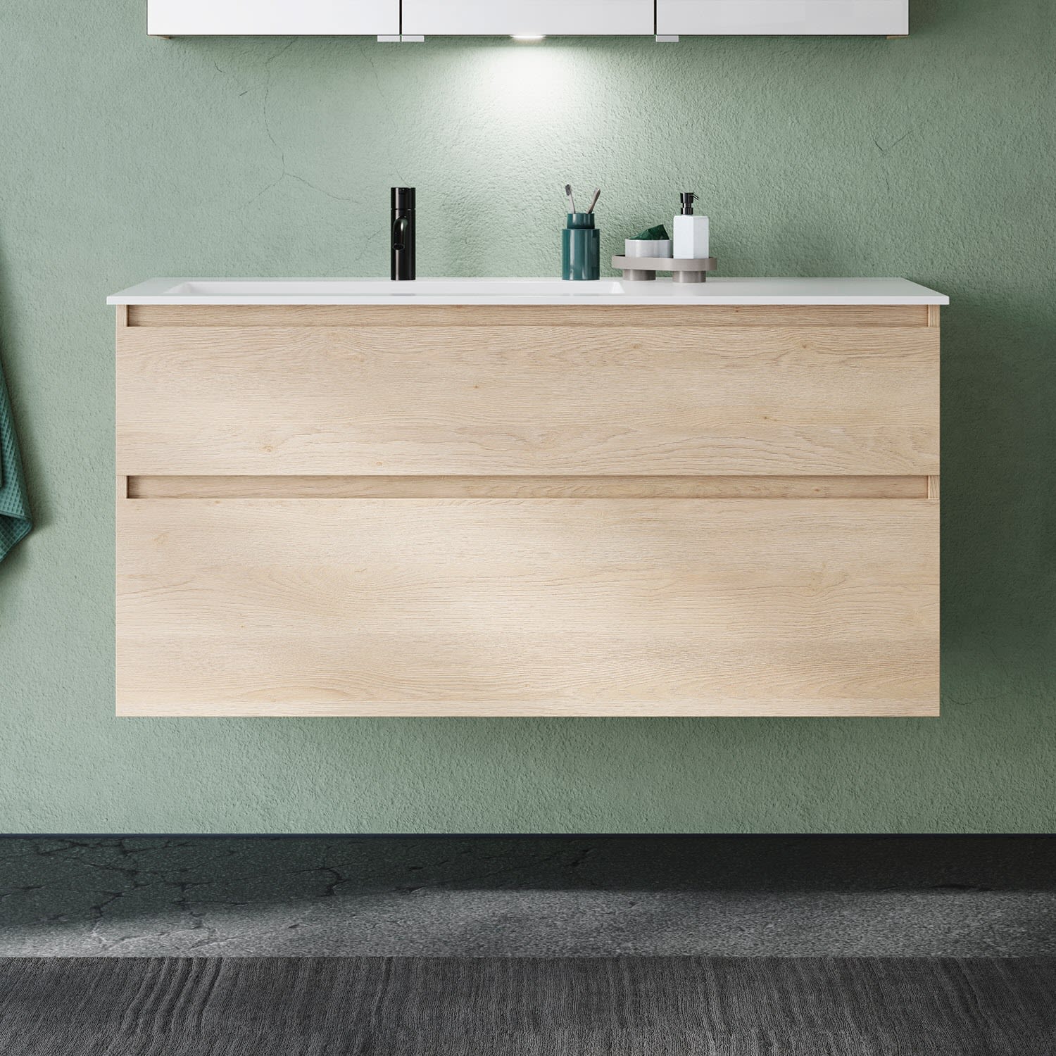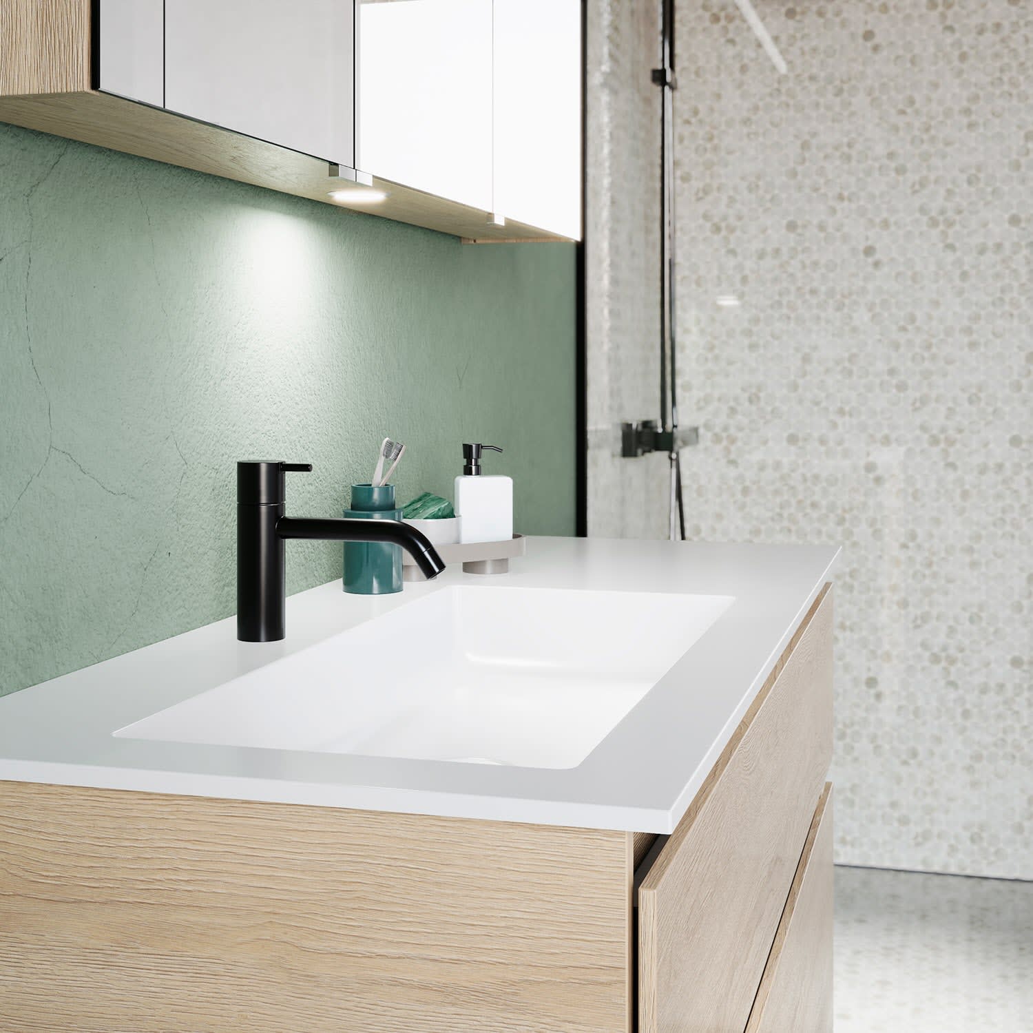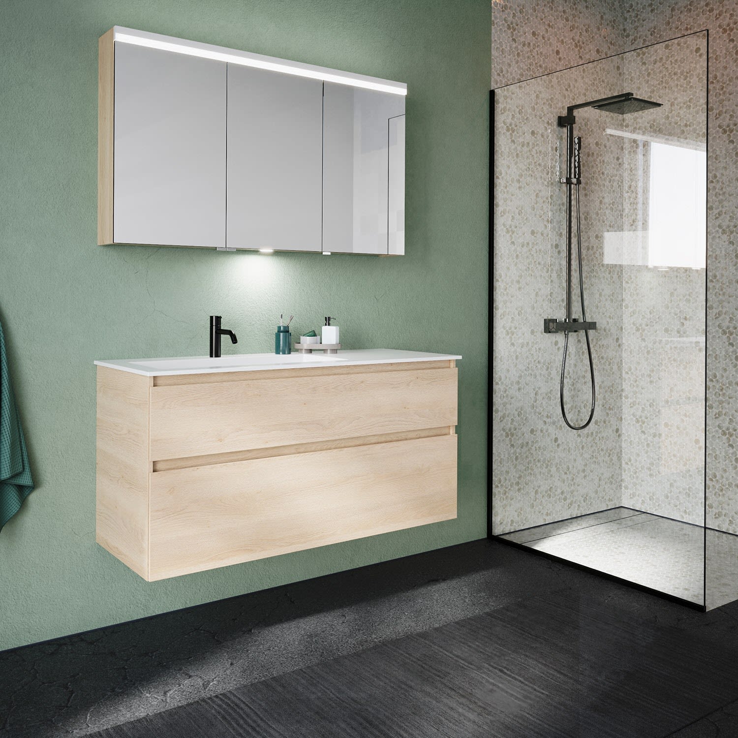 burgbad Lin20 Waschtischunterschrank mit Mineralguss-Waschtisch 122 cm, 2 Auszüge, links