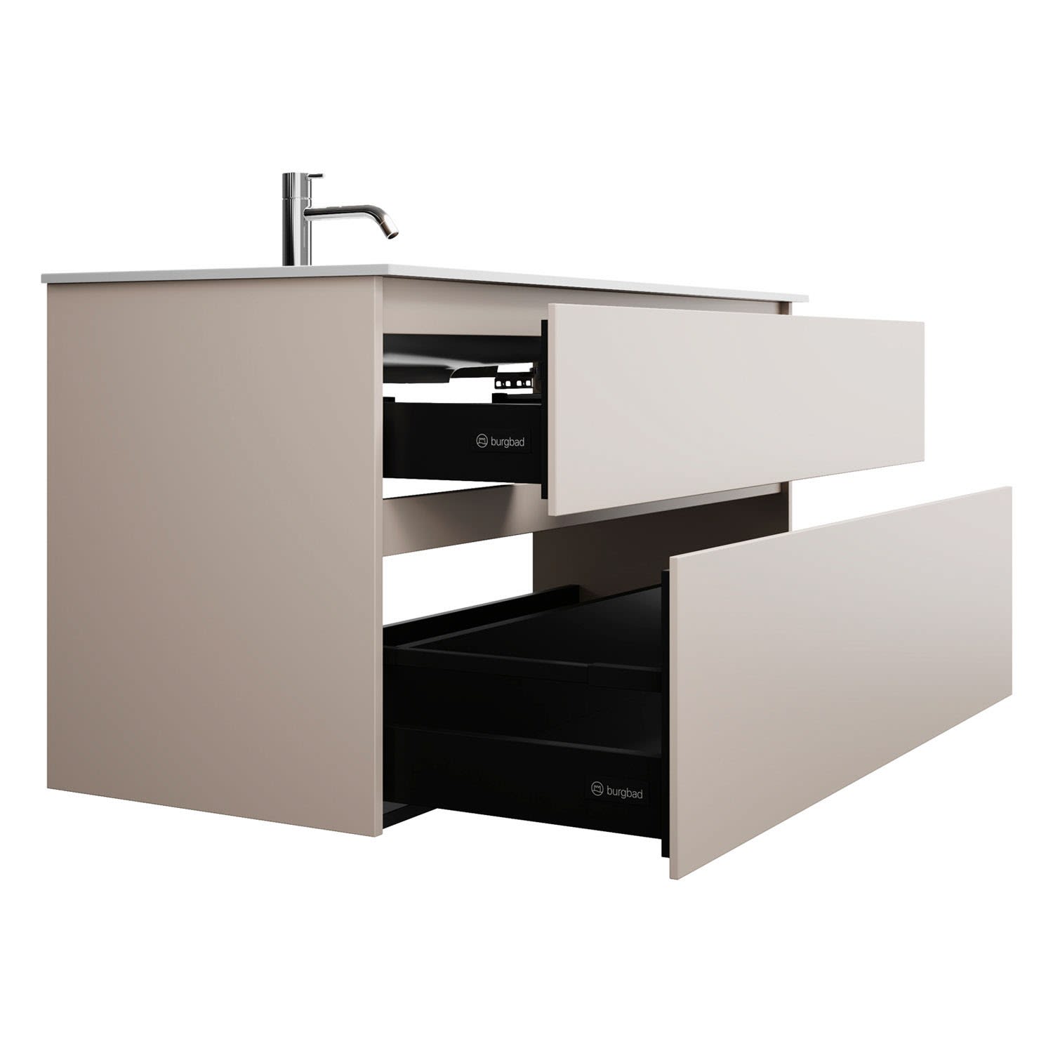 burgbad Lin20 Waschtischunterschrank mit Mineralguss-Waschtisch 122 cm, 2 Auszüge, links
