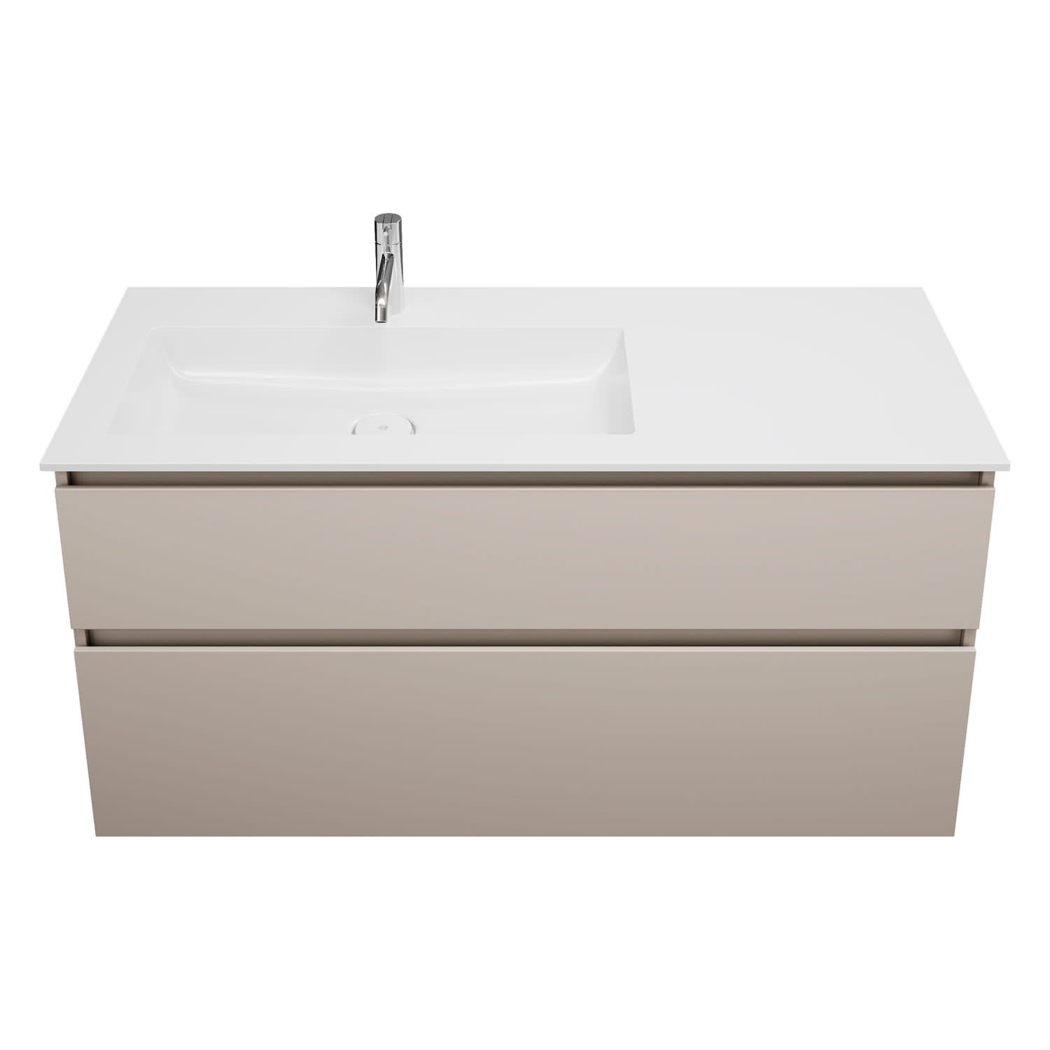 burgbad Lin20 Waschtischunterschrank mit Mineralguss-Waschtisch 122 cm, 2 Auszüge, links