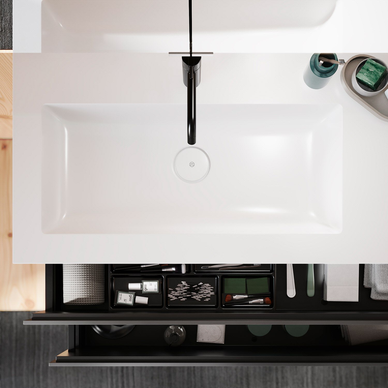 burgbad Lin20 Waschtischunterschrank mit Mineralguss-Waschtisch 122 cm, 2 Auszüge, links