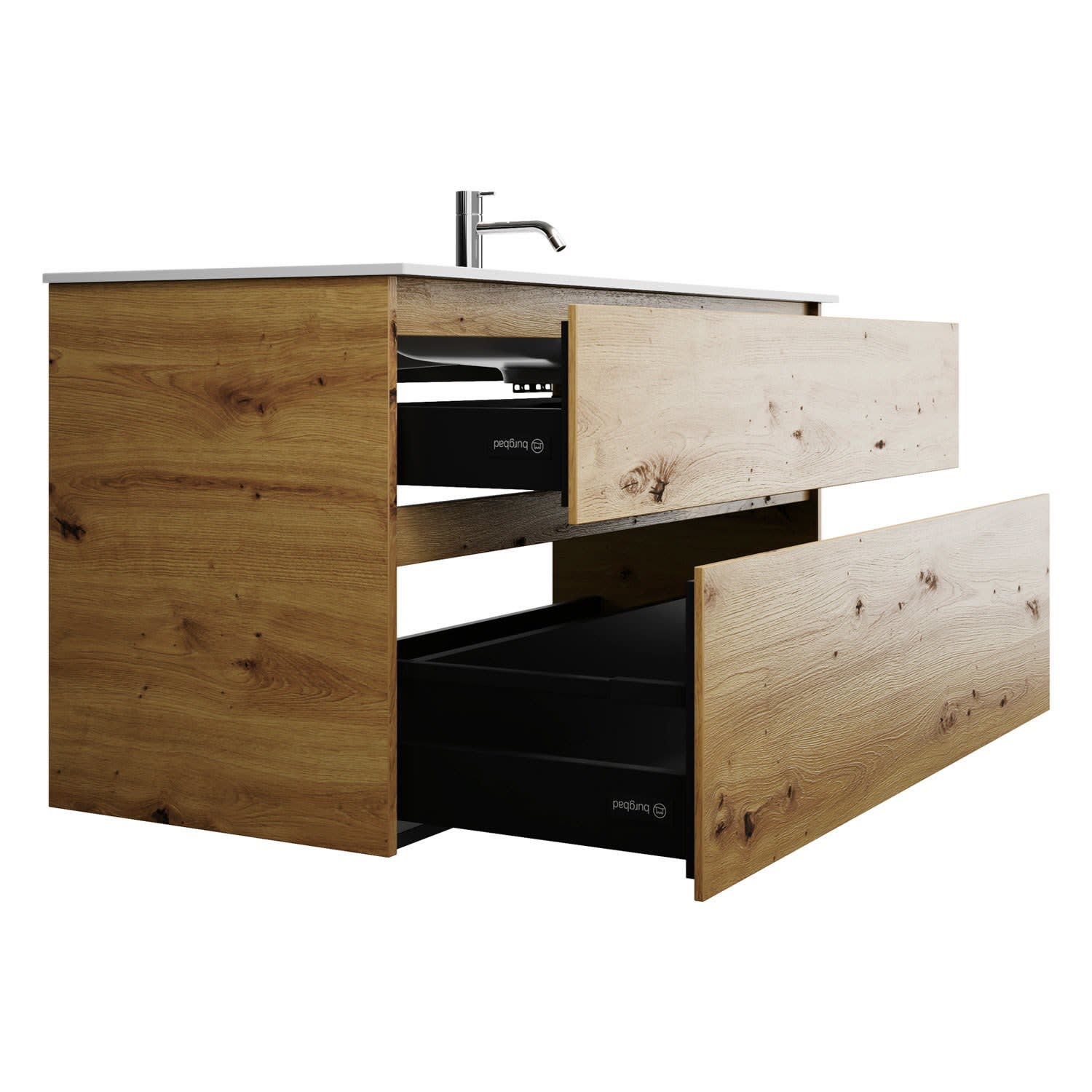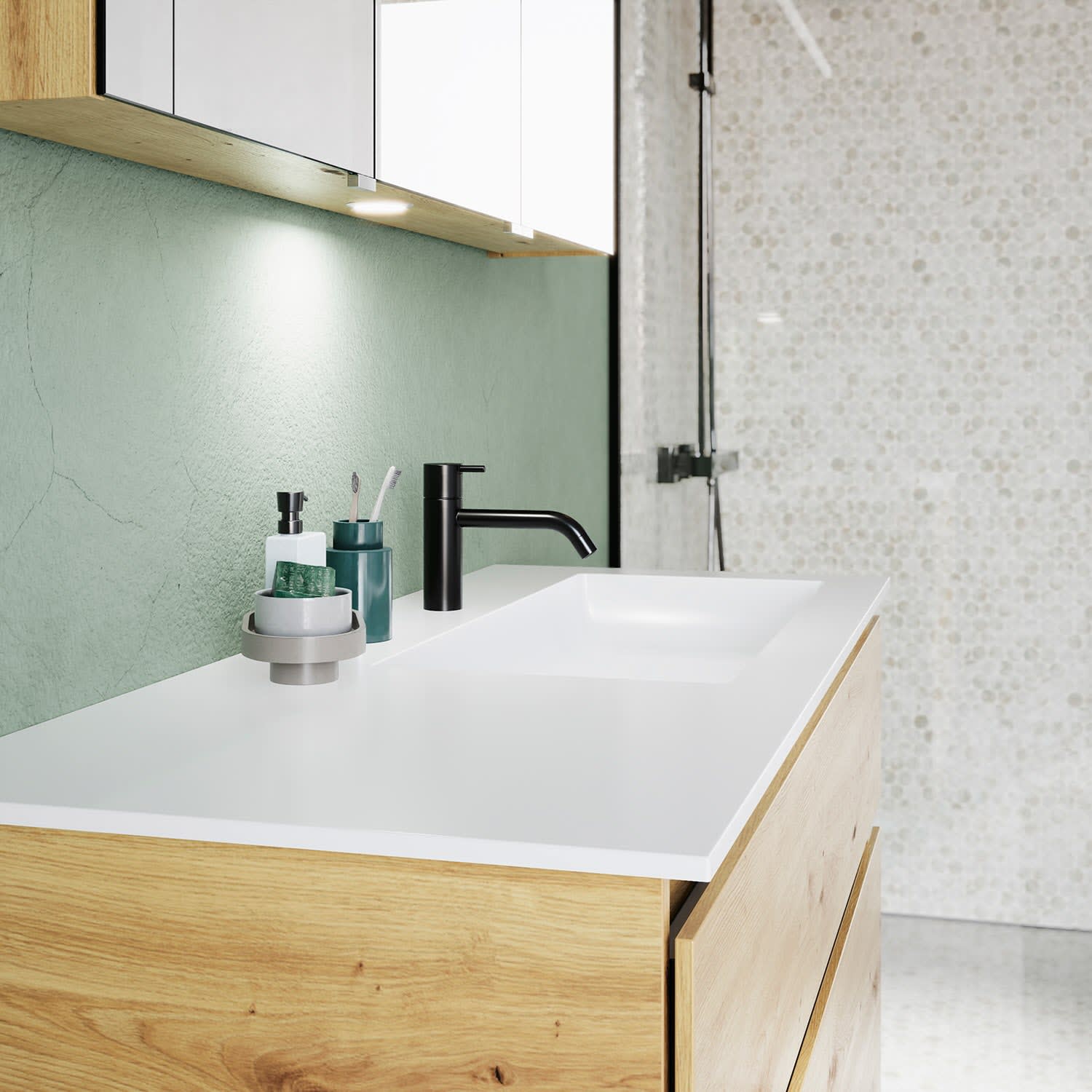 burgbad Lin20 Waschtischunterschrank mit Mineralguss-Waschtisch 122 cm, 2 Auszüge, rechts
