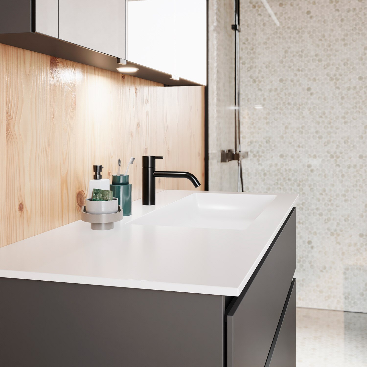 burgbad Lin20 Waschtischunterschrank mit Mineralguss-Waschtisch 122 cm, 2 Auszüge, rechts