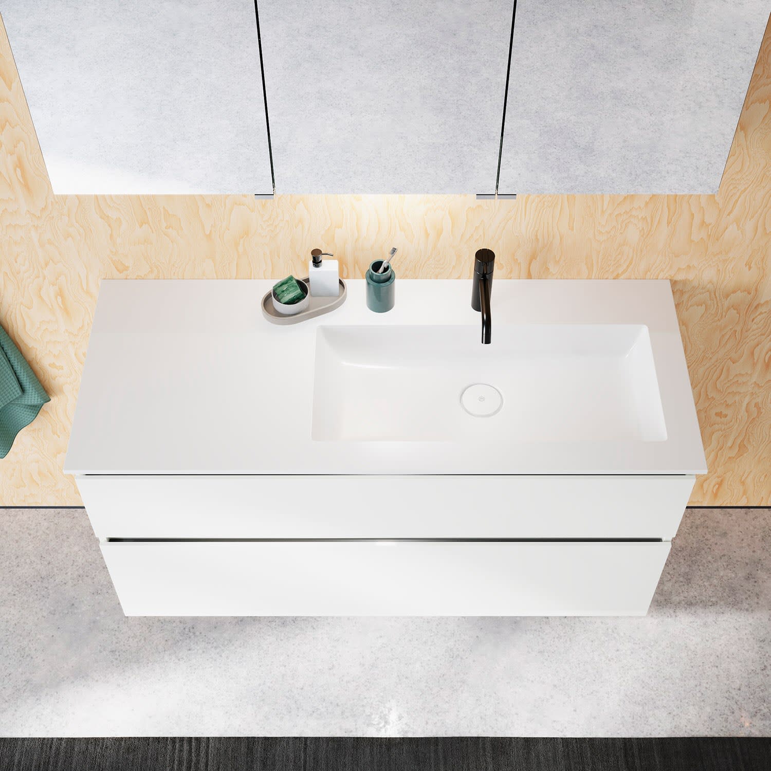 burgbad Lin20 Waschtischunterschrank mit Mineralguss-Waschtisch 122 cm, 2 Auszüge, rechts