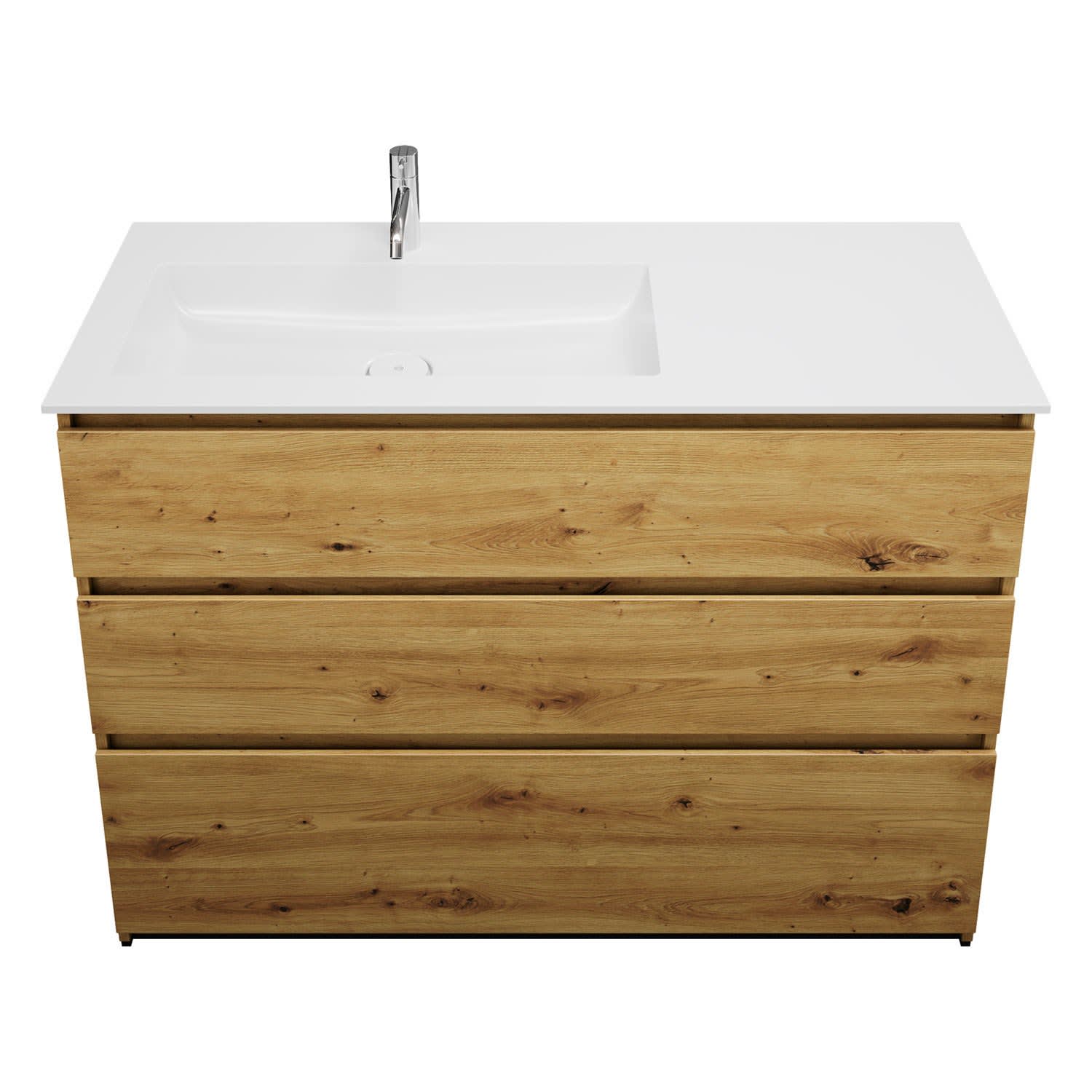burgbad Lin20 Waschtischunterschrank mit Mineralguss-Waschtisch 122 cm, 3 Auszüge, links