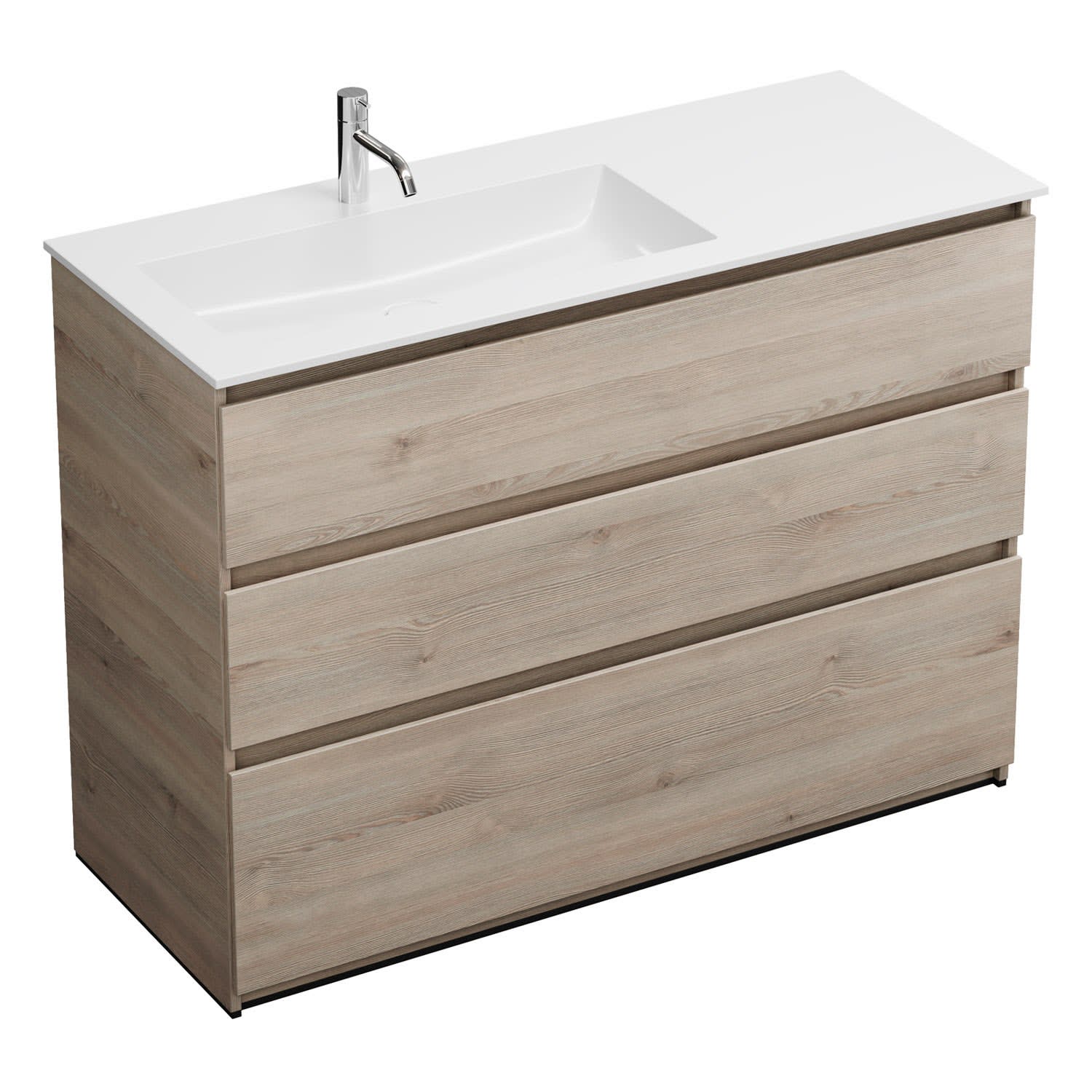 burgbad Lin20 Waschtischunterschrank mit Mineralguss-Waschtisch 122 cm, 3 Auszüge, links