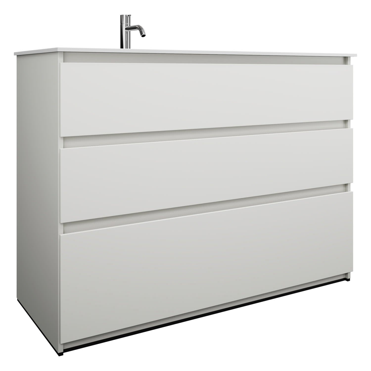 burgbad Lin20 Waschtischunterschrank mit Mineralguss-Waschtisch 122 cm, 3 Auszüge, links